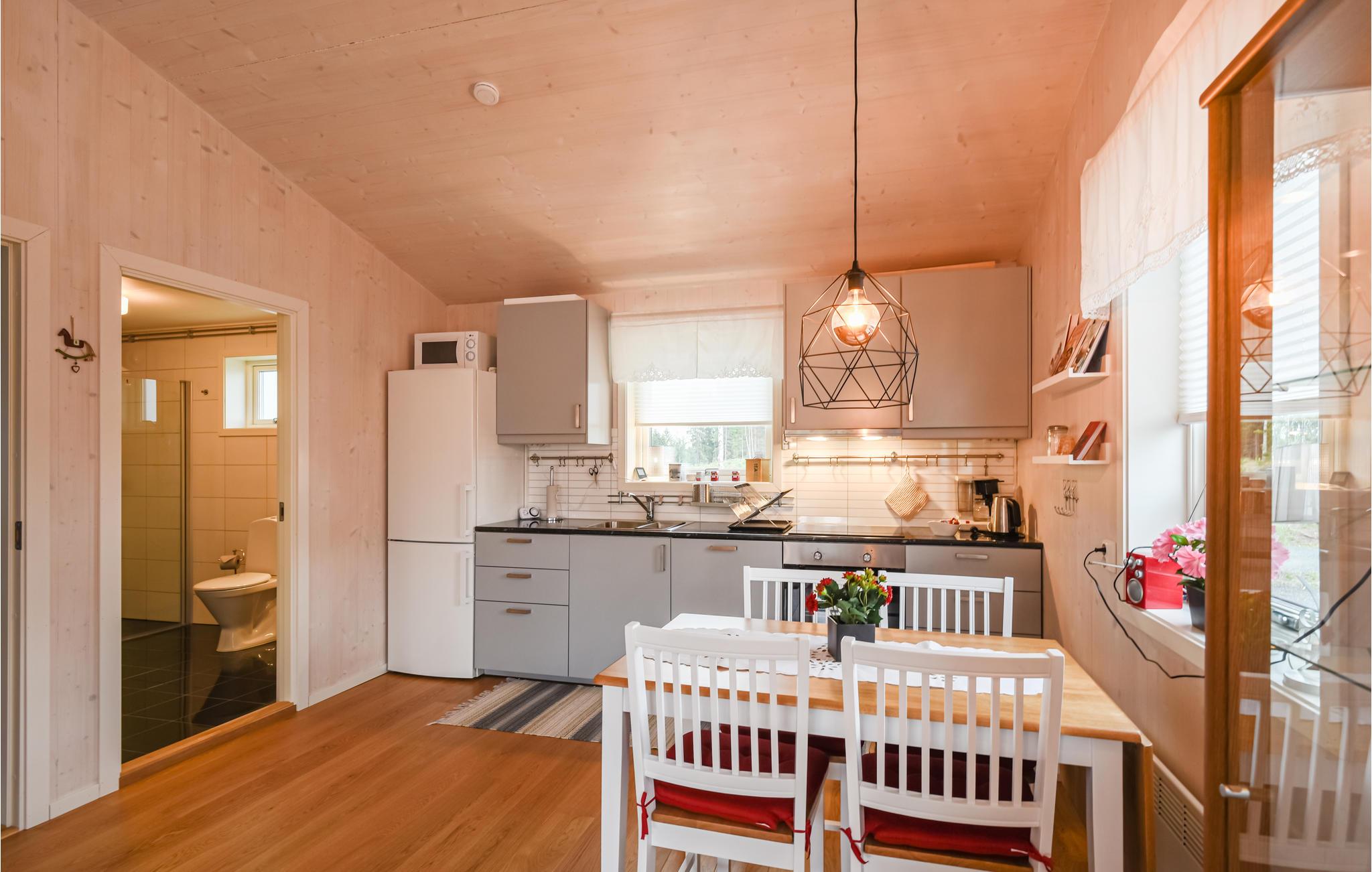 Gehen Sie hinaus und nutzen Sie die großzügige Holzterrasse, die das Haus umgibt. Setzen Sie sich an den Tisch im Freien und genießen Sie Ihre Mahlzeiten an der frischen Luft. Genießen Sie von Haus und Terrasse aus den Blick auf den nahe gelegenen See und lassen Sie Ihre Kinder sicher rund um das Haus spielen. Genießen Sie die ruhige Lage innerhalb der gepflegten Ferienhaussiedlung Sundseruds Stugby.