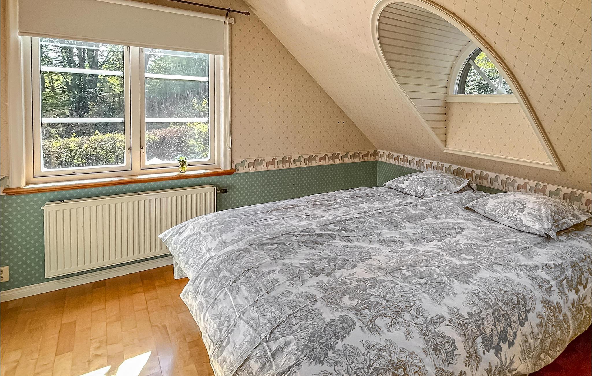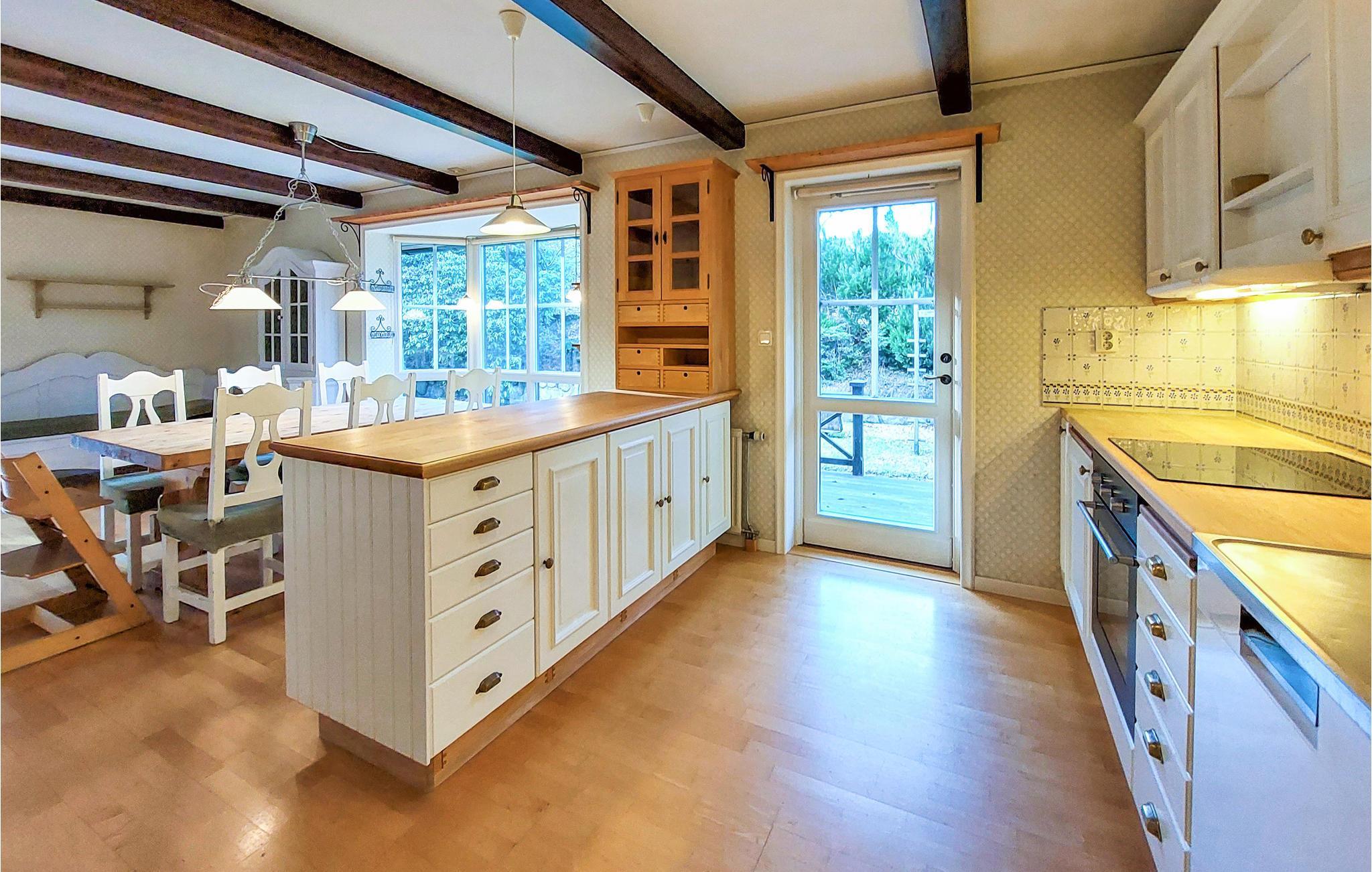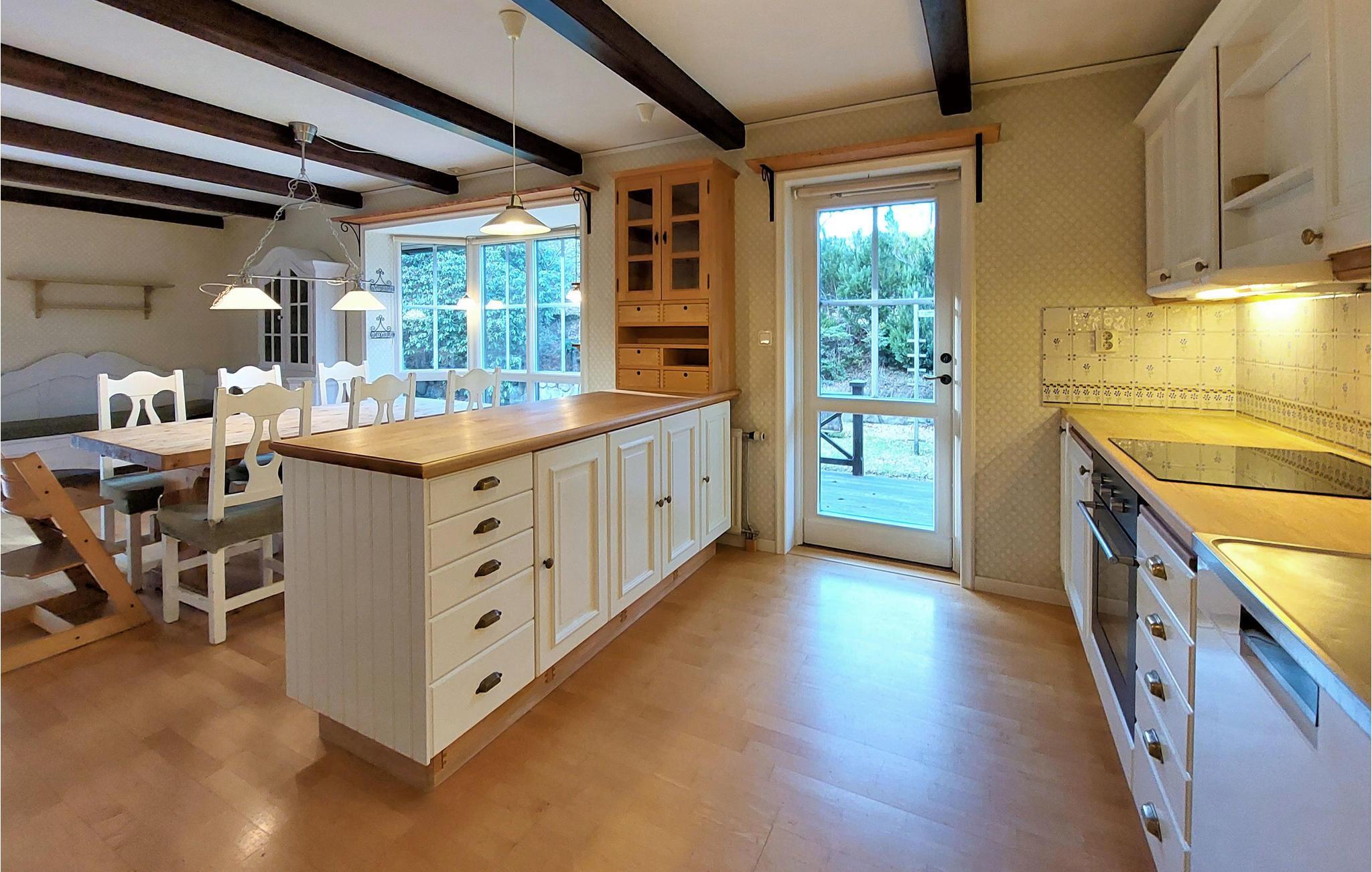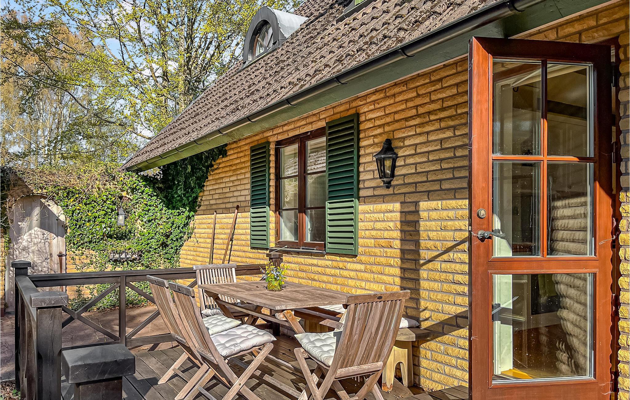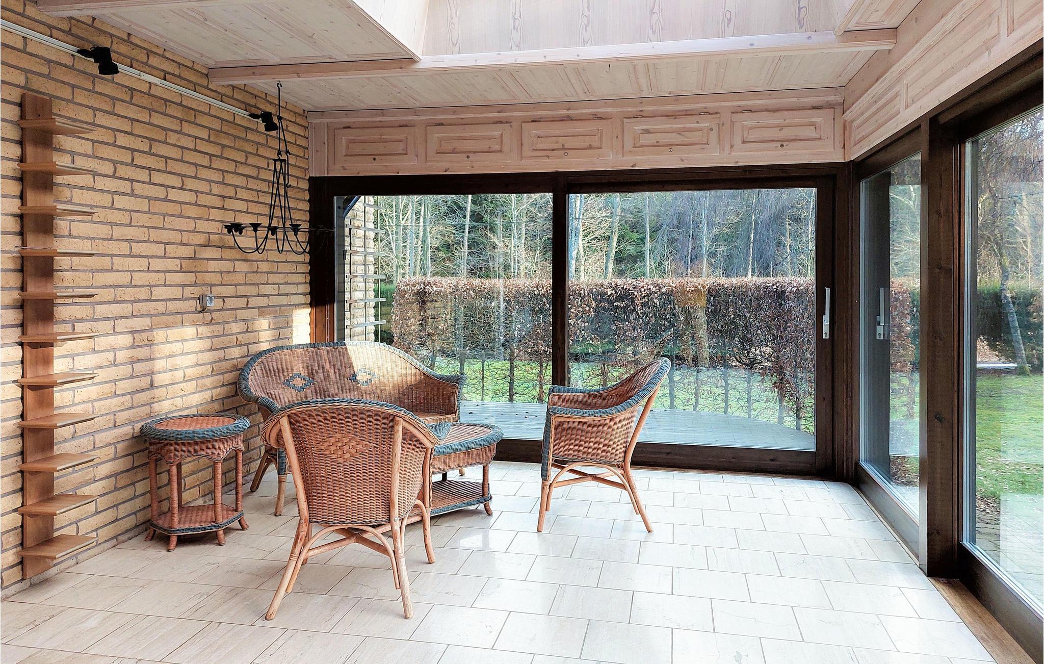 Ein Ferienhaus mit Ambiente in aller Ruhe auf einem riesigen Naturgrundstück. Das finden Sie hier. Verbringen Sie lange Abende in der Abendsonne im schönen Wintergarten mit großen Fenstern und genießen Sie nach einem langen Tag im Wald auf der offenen Terrasse ein leckeres Barbecue. Im Spielhaus können die Kinder tagsüber spielen und die Schaukel probieren. Genießen Sie in der großen, gemütlichen Essküche mit Deckenbalken ein Glas Wein, während Sie kochen, und sprechen Sie über das heutige Picknick und die tollen Schnäppchen vom Flohmarkt.