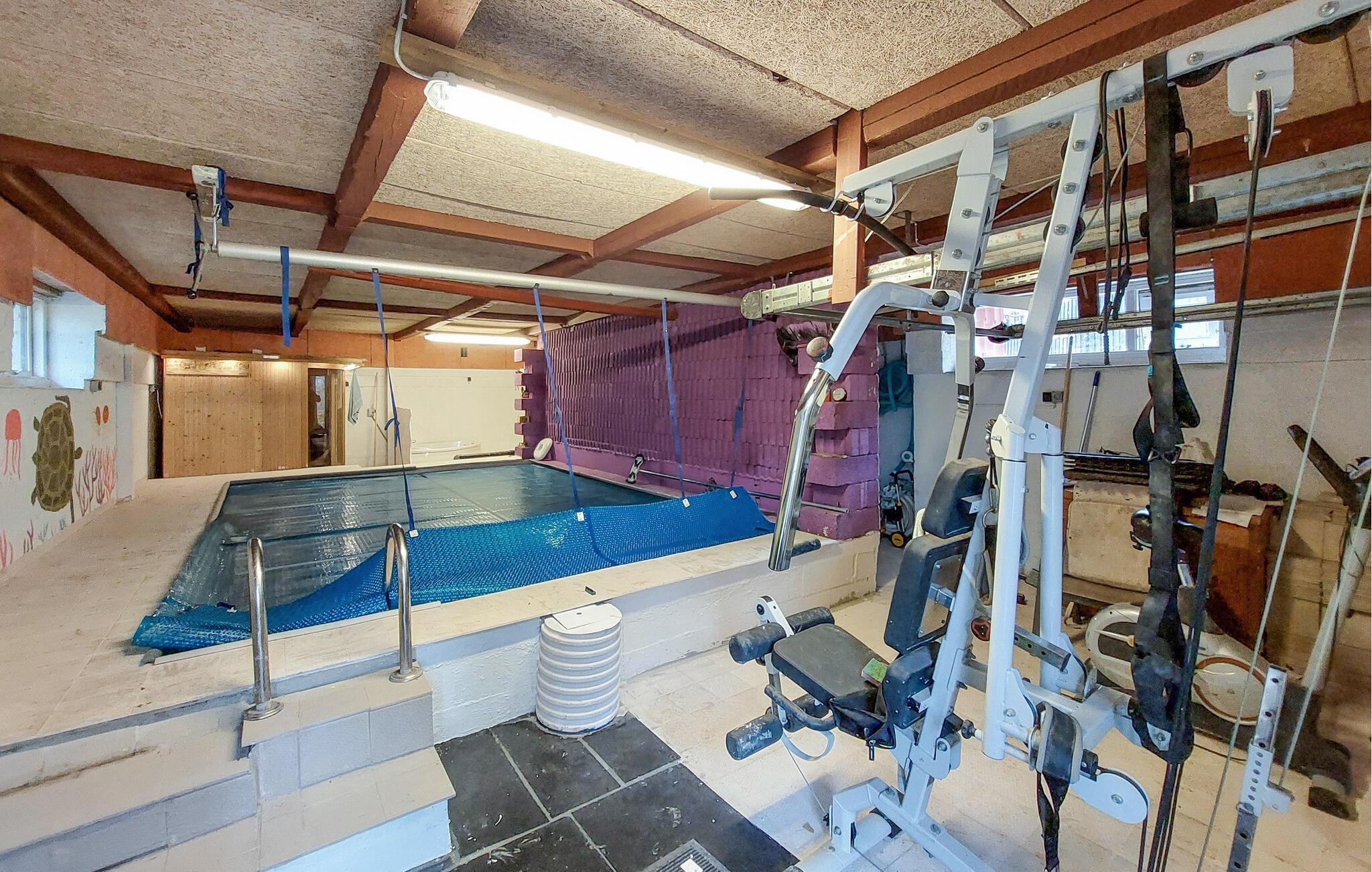 Genießen Sie sonnige Stunden auf der Holzterrasse oder verbringen Sie entspannte Nachmittage im gemeinsamen Wellnessbereich. Die Wohnung ist Teil einer kleinen Anlage mit drei Einheiten, die sich eine große Indoor-Poolanlage mit Fitnessgeräten und eine Sauna teilen.