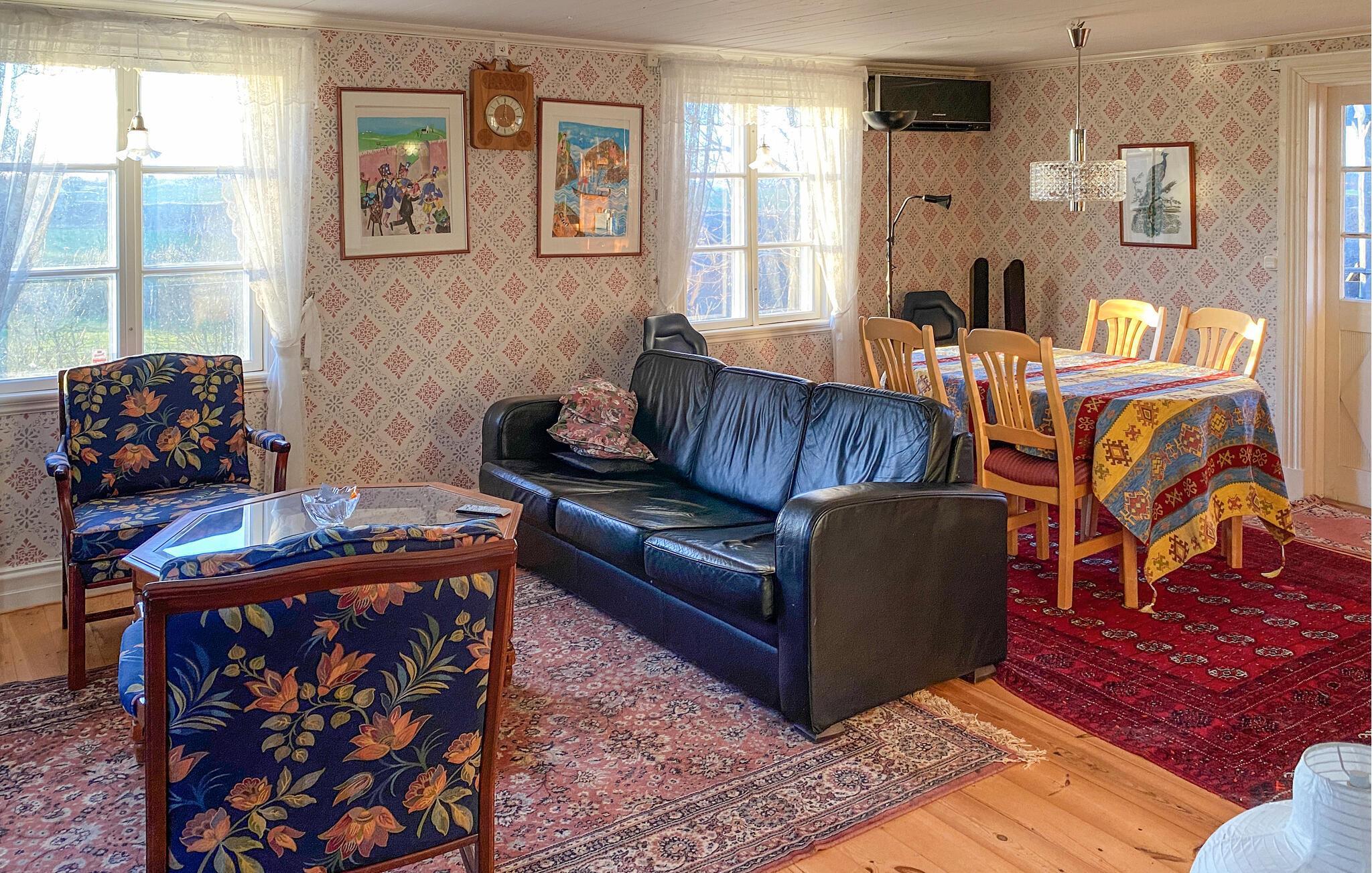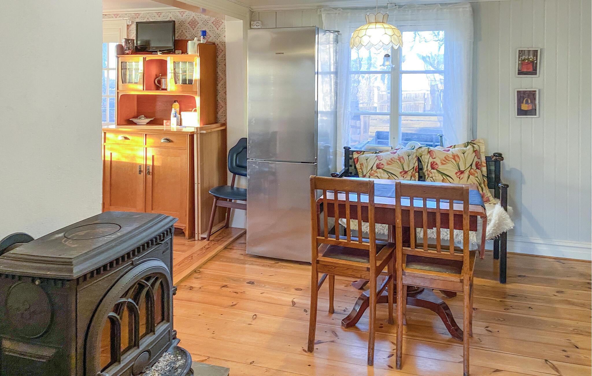 Genießen Sie Ruhe und Erholung in Ihrem Ferienhaus etwas außerhalb von Hästholmen nahe dem Vättern-See. Umgeben von idyllischer Natur bietet dieser Rückzugsort den idealen Rahmen für eine entspannte Auszeit. Treten Sie ein und lassen Sie sich von der warmen und rustikalen Atmosphäre empfangen. Die geschmackvolle Einrichtung mit stilvollen Holzmöbeln, floralen Mustern und liebevollen Details schafft eine behagliche Wohnatmosphäre. Machen Sie es sich auf dem bequemen Sofa oder den übrigen Sitzgelegenheiten gemütlich, genießen Sie die geselligen Abende am Esstisch oder entspannen Sie bei einem guten Buch. Bereiten Sie in der praktischen Essküche original schwedische Mahlzeiten zu.