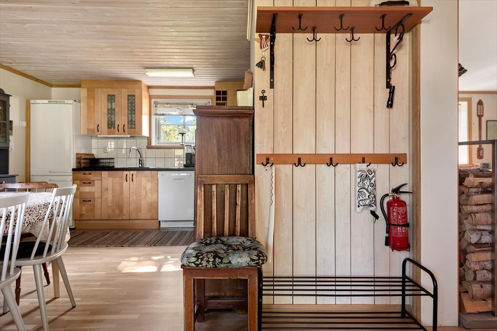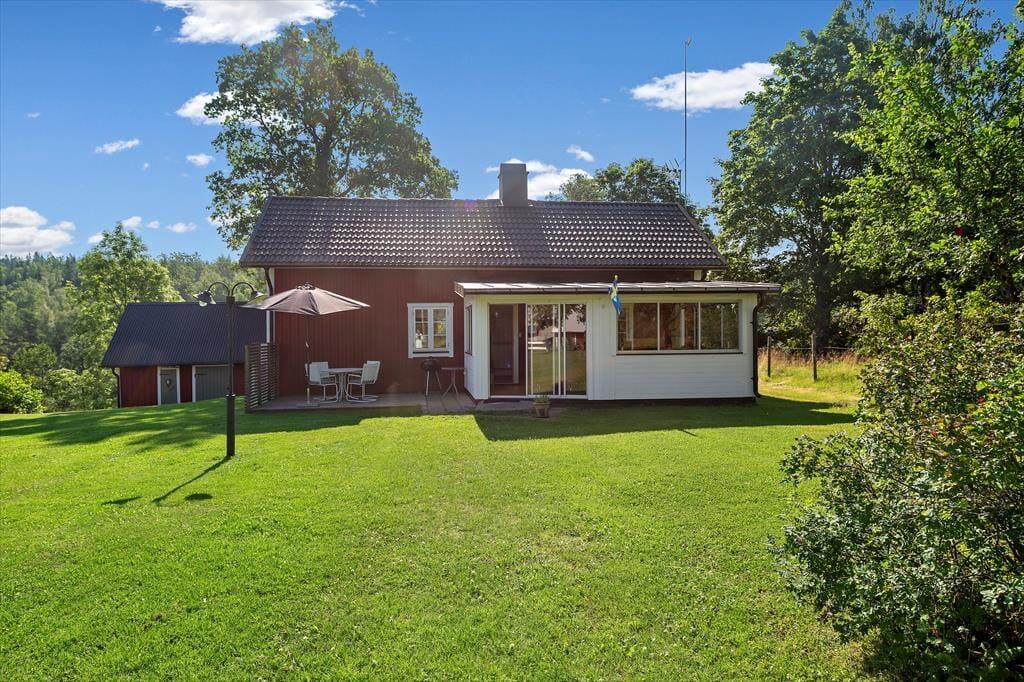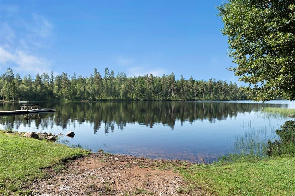 Das Ferienhaus "Slätthögs Målen" liegt umgeben von herrlicher Natur idyllisch auf dem Gelände eines ehemaligen Bauernhofs. Ein kleiner Bach fließt in der Nähe des Hauses und verbindet den etwa 2 km entfernten See Grunnen mit dem nach etwa 4 km erreichbaren See Rymmen. Hier kannst du ungestört Angeln, Baden, oder einfach am Ufer entspannen. Ein kinderfreundlicher Badestrand ist etwa 3 km entfernt. Die nächste Einkaufsmöglichkeit gibt es in Lammhult, etwa 14 km entfernt. Für einen Stadtbummel oder größere Besorgungen bieten sich Värnamo (30 km) oder Växjö (50 km) an. Die nächste Nachbarschaft ist rund 50 m entfernt.