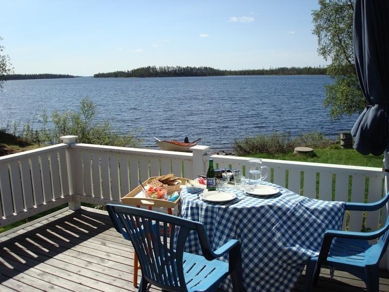 Nur gut 100 km südlich des Polarkreises befindet sich das Ferienhaus Arjeplog Storavan zusammen mit einem Gästehaus in Alleinlage auf einem Seegrundstück am malerischen See Storavan in der historischen Provinz Lappland. Die nächste Badestelle und das eigene, motorisierte Boot erwarten die Gäste auf dem eigenen Grundstück. Und Anglerherzen schlagen höher, wenn man von den “Riesensaiblingen” hört, die hier gefangen wurden. Was echte Alleinlage bedeutet, kann man hier erproben: die nächste Einkaufsmöglichkeit in Arjeplog ist “mal eben um die Ecke” etwa 40 km entfernt, zum Bahnhof und Flugplatz in Arvidsjaur sind es "nur" etwa 80 km.