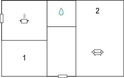 Wohnraum - 2 Schlafmöglichkeiten. (Schlafsofa,Matratze,Sonstiges). 1 Schlafmöglichkeit. (Matratze).