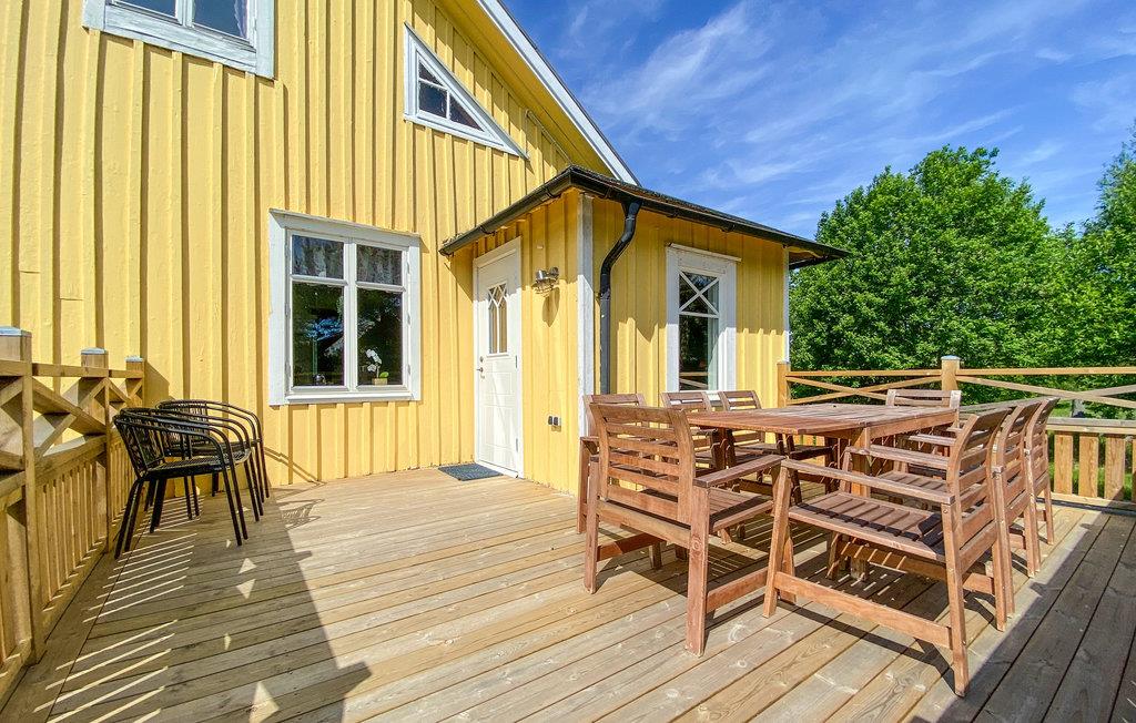 Ein Urlaub mit schönen Angeltouren und Erlebnissen zu Fuß und auf dem Fahrrad erwartet Sie an diesem ruhigen Wohlfühlort. In dem gelben Holzhaus mit hinreißender Aussicht über Wald und Feld gibt es jede Menge Platz. Mit historischem Flair, geschmackvollen Tapeten, einer großen Küche für Kochspaß und der Einrichtung im gemütlichen Stil schafft das Haus aus dem Jahr 1900 eine besondere Stimmung. Hier ist alles für einen unbeschwerten Familienurlaub vorhanden. Wenn Sie von einem langen Ausflug nach Hause kommen, werden Sie bestimmt Ihre Beine auf das komfortable Sofa hochlegen wollen und sich die schönen Fotos von heute anschauen! Lassen Sie auf der offenen Terrasse einen erlebnisreichen Tag mit leckerem Grillessen ausklingen. Versuchen Sie Ihr Glück beim Angeln und springen Sie in den erfrischenden See.