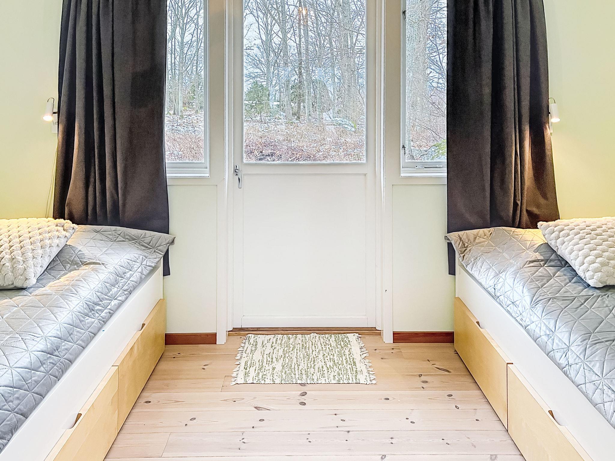 "Ragnabo", 5-room house 100 m2. Comfortable furnishings: open living room with open-hearth fireplace (only for decoration), dining table. Exit to the terrace, to the patio. 1 room with 1 double bed (180 cm, length 200 cm). Exit to the patio. 1 room with 2 beds (20 cm, length 200 cm). Exit to the garden. 2 rooms, each room with 1 x 2 bunk beds (90 cm, length 200 cm). Kitchen (4 hot plates, oven, dishwasher, toaster, kettle, microwave, freezer, electric coffee machine). Bath/WC. Heating. Wooden floors. Terrace 40 m2. Terrace furniture, barbecue (portable). Beautiful panoramic view of the sea. Facilities: washing machine. Please note: non-smoking house. Private mooring. Smoke alarm, fire extinguisher.