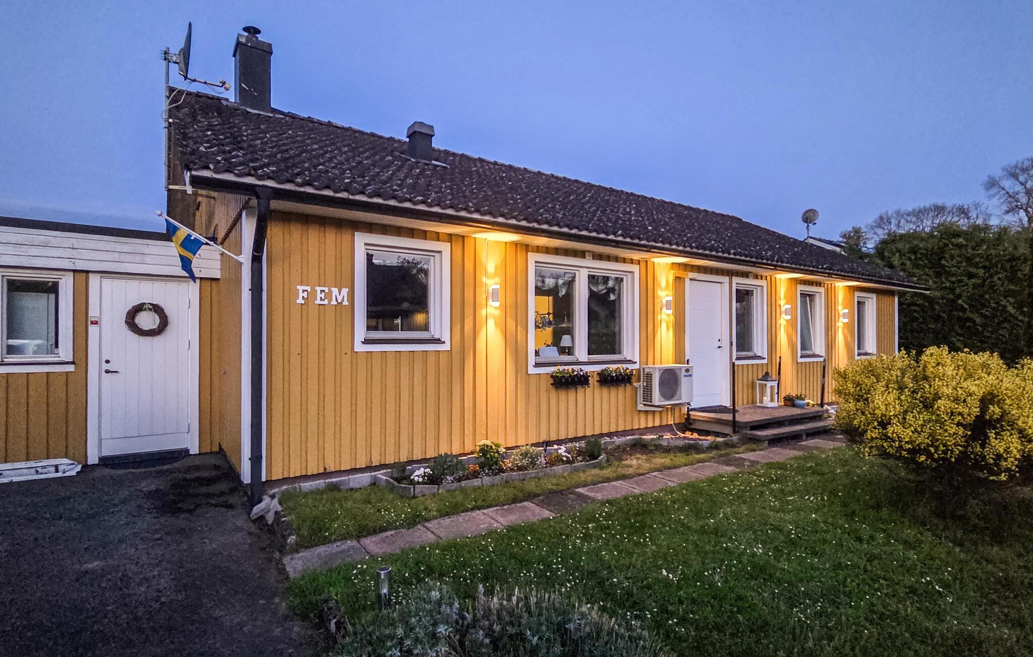Genießen Sie einen erholsamen Aufenthalt in diesem freundlich eingerichteten Ferienhaus. Die ruhige Lage, der gepflegte Garten und die überdachte Terrasse bieten beste Bedingungen für entspannte Ferientage in Småland. Treten Sie ein in den großzügigen Wohnbereich mit bequemen Sofas, Kaminofen und großen Fenstern zum Garten. Nutzen Sie den Raum zum Lesen, Spielen oder um einfach zur Ruhe zu kommen. In der einladenden Küche mit Frühstückstresen und angrenzendem Essbereich bereiten Sie Ihre Mahlzeiten gemeinsam zu und genießen sie mit Blick ins Grüne. Für entspannte Momente steht Ihnen auch eine Sauna zur Verfügung.