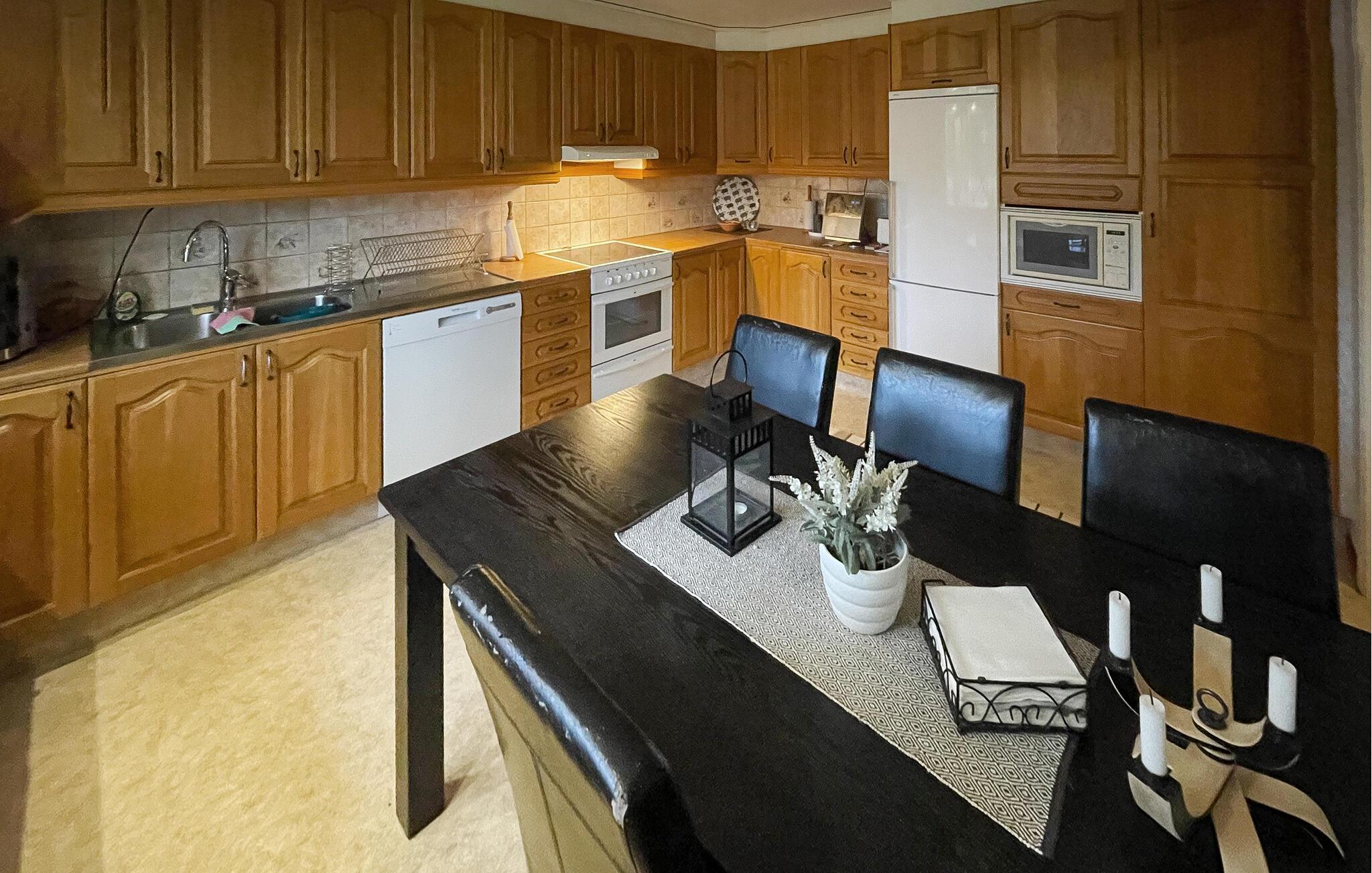 Genießen Sie Ihren nächsten Urlaub in diesem gemütlichen Ferienhaus, dem idealen Rückzugsort für Familien und Paare, die eine erholsame Auszeit inmitten idyllischer Landschaft suchen. Die geschmackvolle Einrichtung besticht durch warme Holztöne und eine liebevolle Dekoration. Der großzügige Wohnbereich bietet mit seiner gemütlichen Sofalandschaft und dem großen Esstisch reichlich Platz für gemeinsame Stunden. In der offenen Küche können Sie Ihre Lieblingsgerichte zubereiten und diese anschließend am angrenzenden Esstisch genießen. Der Wintergarten ist ein Highlight des Hauses, ideal für gemütliche Abende bei jedem Wetter.