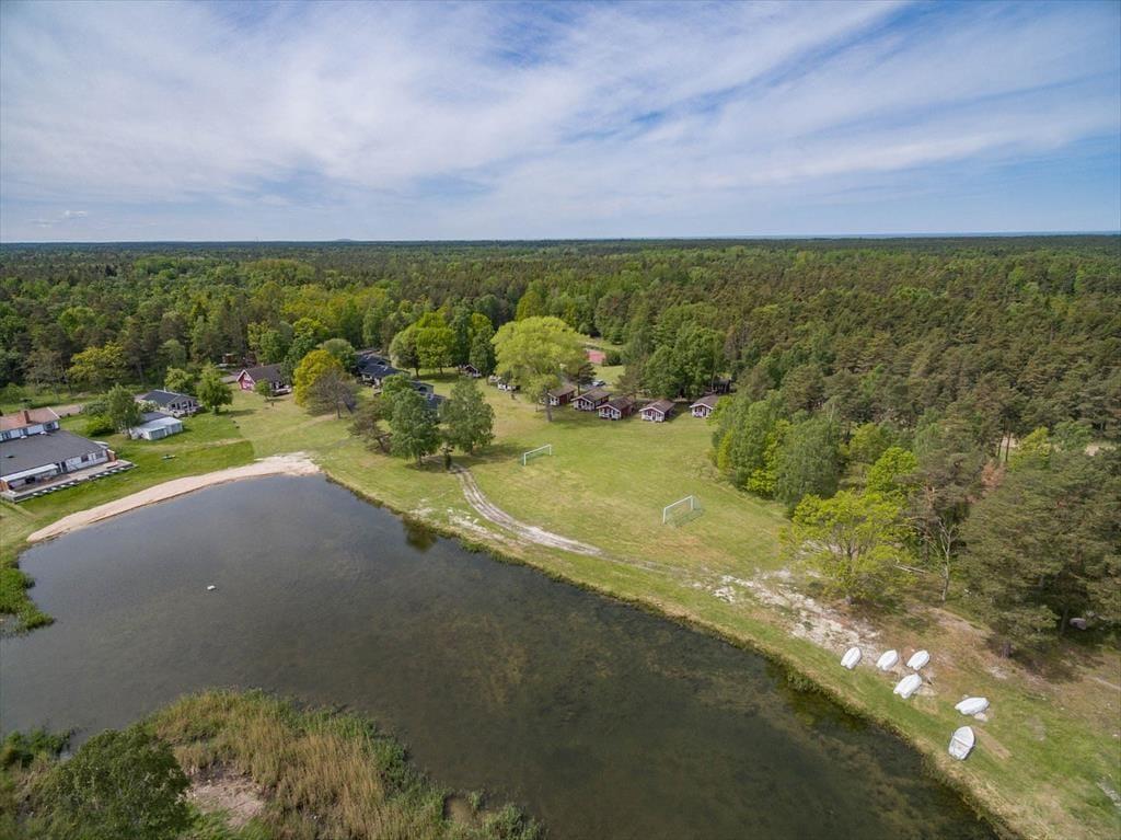 Dieses Ferienhaus befindet sich in einer kleinen Ferienanlage im nördlichen Teil Ölands, direkt an der Ostseeküste. Insgesamt stehen auf dem Gelände 25 Häuser, davon gehören 14 identische Objekte zu diesem Angebot. Der feinsandige Strand mit Badesteg liegt nur rund 100 Meter entfernt.