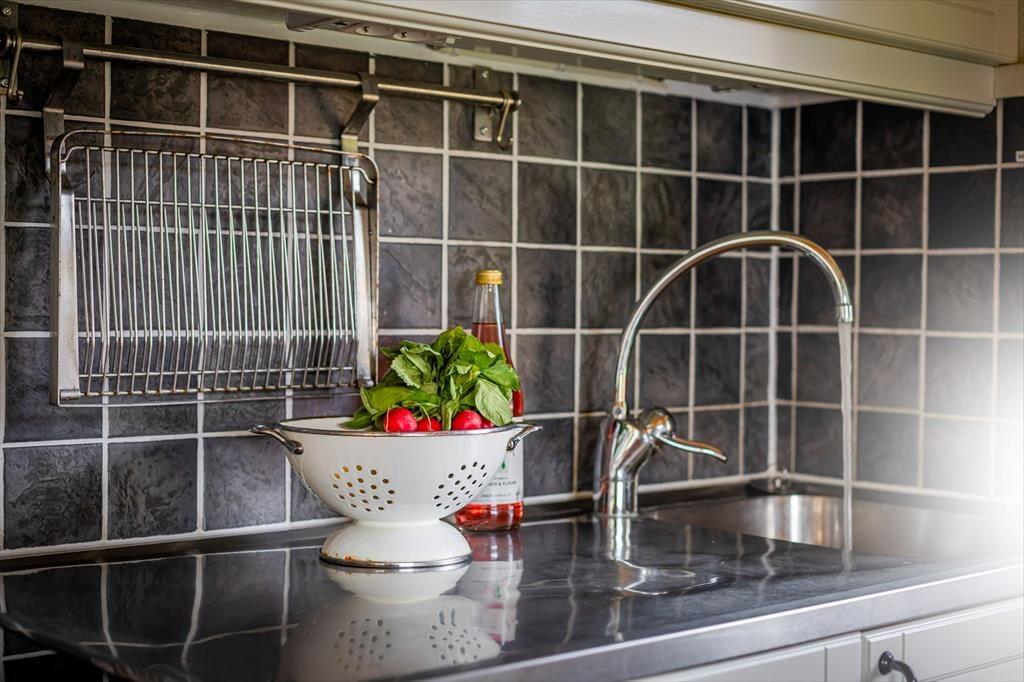 Waschmaschine und Trockner befinden sich nicht direkt im Haus – wenige Meter weiter steht ein separates Waschhaus mit mehreren Geräten bereit, die kostenfrei genutzt werden können. WLAN ist ebenfalls gratis. Zusätzlich können Endreinigung sowie Handtücher und Bettwäsche für 20 € pro Set hinzugebucht werden. Für Freizeitaktivitäten stehen auf dem Gelände ein Tennisplatz, ein Spielplatz sowie ein kleiner Fußballplatz zur Verfügung.