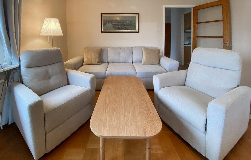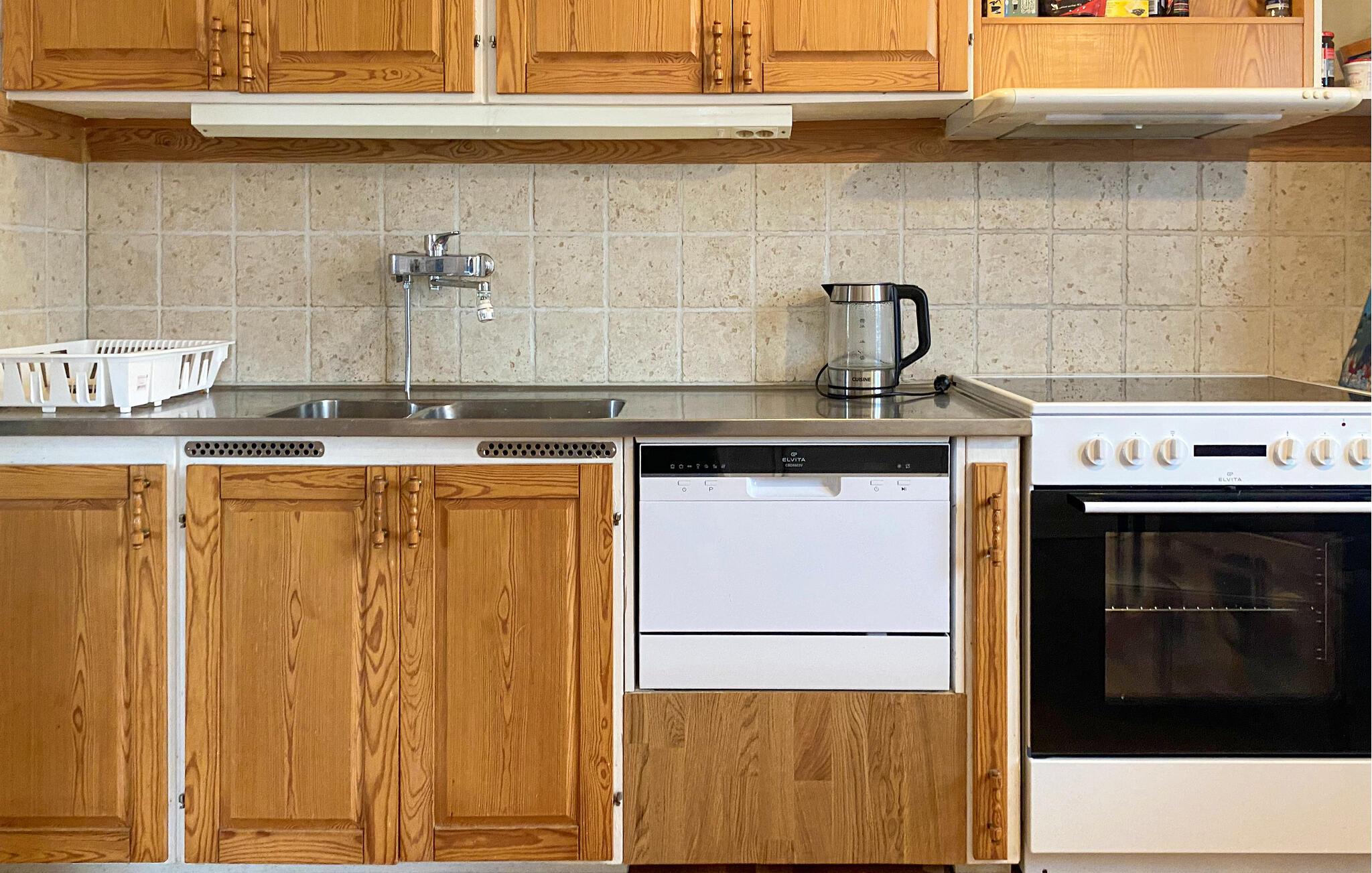 Betreten Sie den Innenbereich und genießen Sie die wohnliche Atmosphäre. Das Wohnzimmer ist mit einem bequemen Sofa und weichen Sesseln ausgestattet und bietet viel Platz für gemeinsame Stunden. Machen Sie es sich hier gemütlich, lesen Sie ein Buch oder verbringen Sie einen Spieleabend am Couchtisch. Der Essbereich schließt sich offen an und eignet sich ideal für gemeinsame Mahlzeiten oder die Planung der nächsten Ausflüge. Nutzen Sie die separate Küche, die funktional eingerichtet ist, bereiten Sie hier Ihre Lieblingsgerichte zu und nehmen Sie am kleinen Küchentisch Platz.
