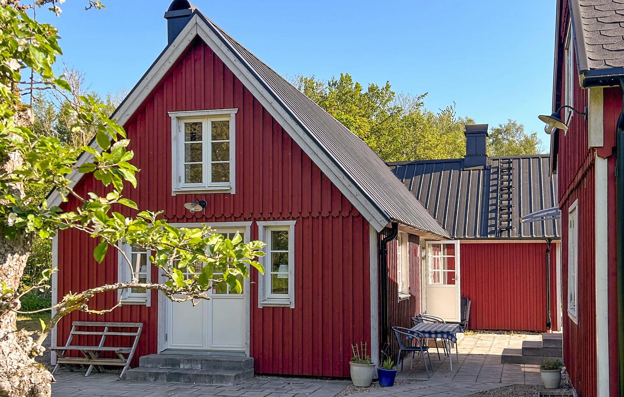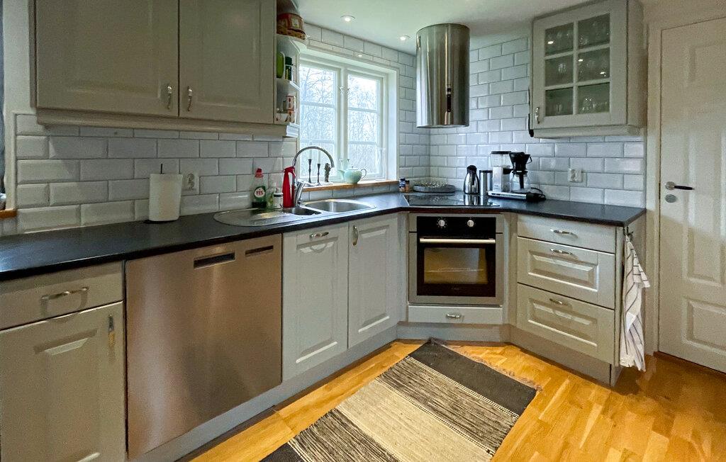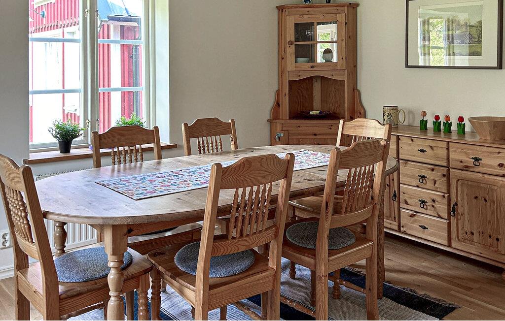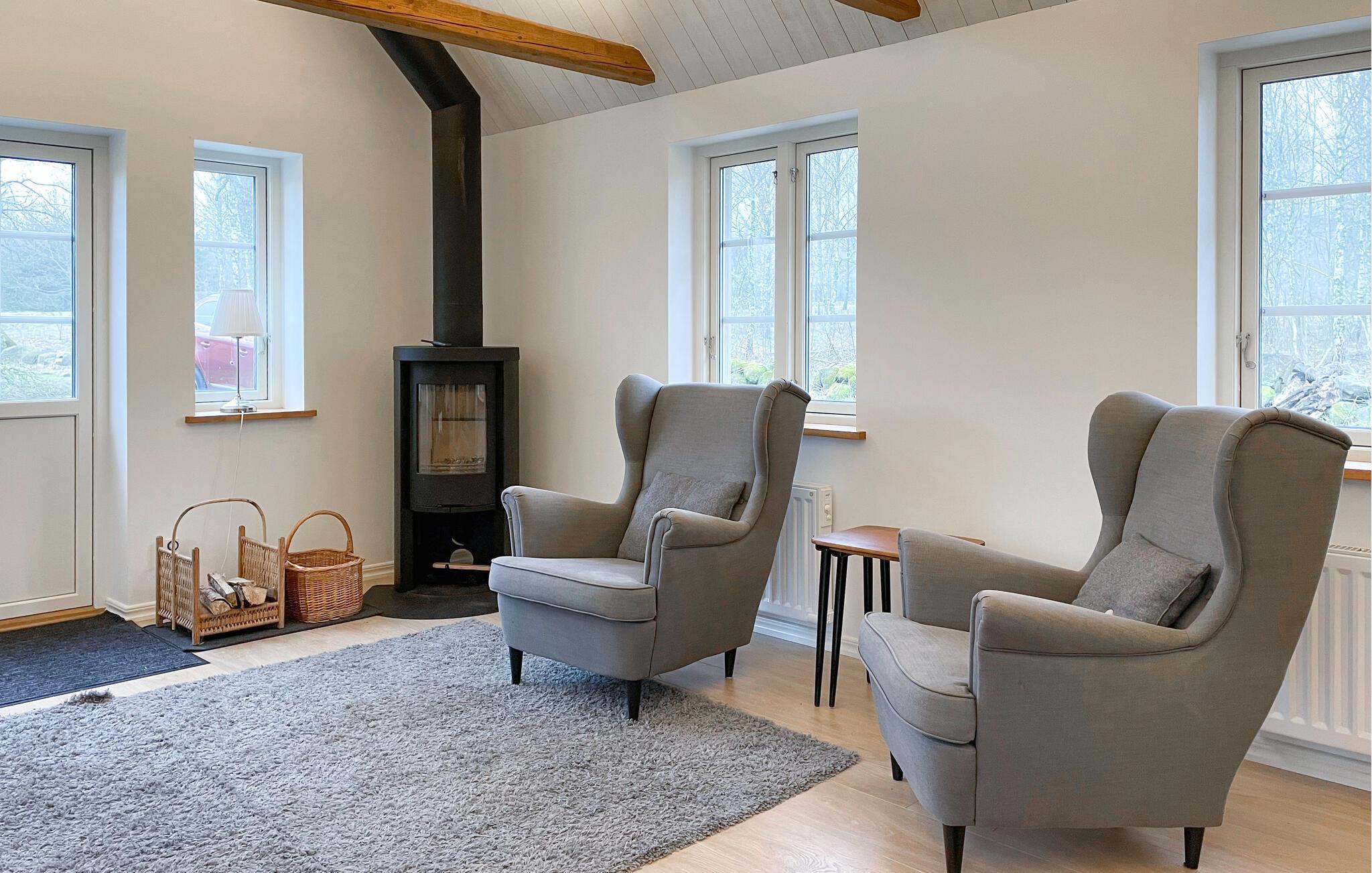 Dieses einladende Ferienhaus, ideal für Familien, erwartet Sie zu einem traumhaften Schweden-Urlaub. Ihre Unterkunft besteht aus zwei Gebäuden und liegt mitten in der Natur. In der Küche lässt sich morgens ein wunderbares Frühstück zaubern. Planen Sie danach den Tag und genießen Sie die urgemütliche Stimmung sowie den traditionellen Charme und modernen Komfort in Ihrem Ferienhaus. Zu gemeinsamen Mahlzeiten können Sie am langen Holztisch im Wohnbereich zusammenkommen. Auf dem weichen Sofa und den schönen Sesseln findet die ganze Familie Platz zum Relaxen und Filme ansehen. Oder lassen die Seele beim Knistern des Kaminfeuers baumeln. Spielen Sie lustige Naturspiele mit Ihren Kindern im großen Garten. Am Ende des Tages lädt die Sauna zu Entspannung pur ein.