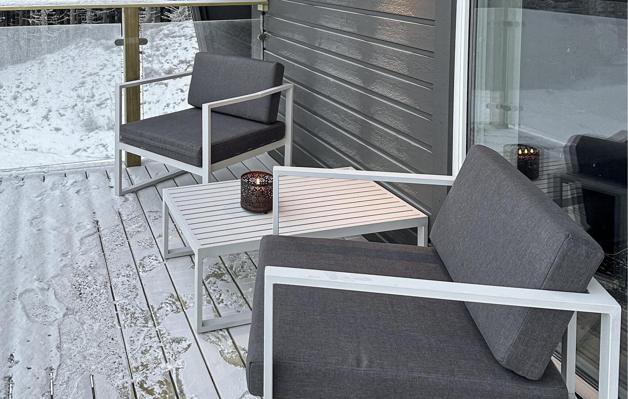 Soweit das Wetter es zulässt, ist die Terrasse der ideale Ort für einen Kaffee im Freien. Ob bei Sonnenschein oder eingewickelt in eine Decke – von hier genießen Sie eine wunderschöne Aussicht in die Weite des Klarälv-Tals, das mit seinen Flusslandschaften, tiefen Wäldern und klarer Luft zu jeder Jahreszeit seinen besonderen Reiz entfaltet.