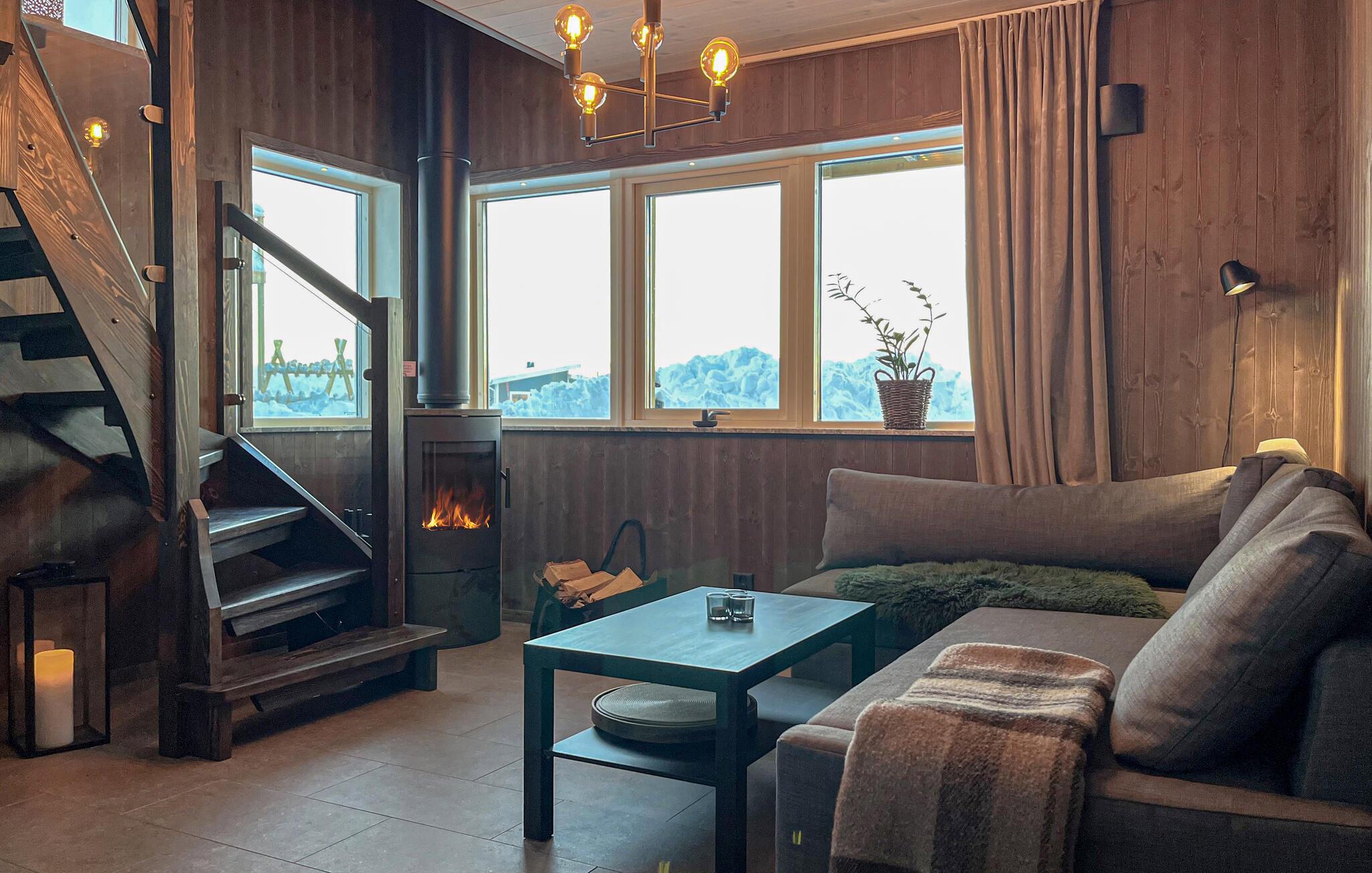 Dieses schöne Holzhaus ist wie geschaffen für Ruhe und Erholung. Das viele Holz sorgt für eine wohltuende Atmosphäre, auf der großen Sofalandschaft können Sie nach einem langen Tag in der Natur ausruhen und in der praktischen Küche lassen sich unkompliziert gesunde Mahlzeiten zubereiten. An kühlen Tagen entzünden Sie den Kaminofen oder nehmen eine Wärmebad in der Sauna.