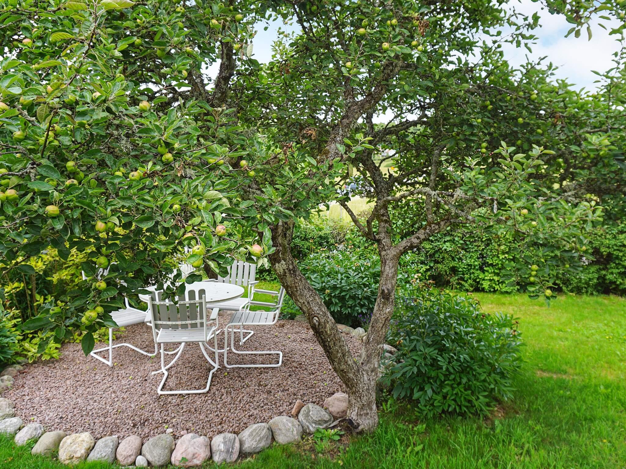 Das Ferienhaus liegt am Rande eines Wohngebietes und verfügt über einen großen, liebevoll eingewachsenen Garten mit Bäumen, Sträuchern und Blumenbeeten. Hier wurde, zur großen Freude der Kinder, auch ein Baumhaus erbaut. Das Ferienhaus verfügt über Hecken und Tore, die zusammen den gesamten Garten umschließen. Bei der Renovierung wurde auch ein schöner Terrassenbereich mit schönen Sommermöbeln und einem Grill sowie eine kleine Oase mit Sommermöbeln im Schatten eines Apfelbaums angelegt, schöne Plätze, um die Sonne und Wärme oder Grillabende zu genießen.