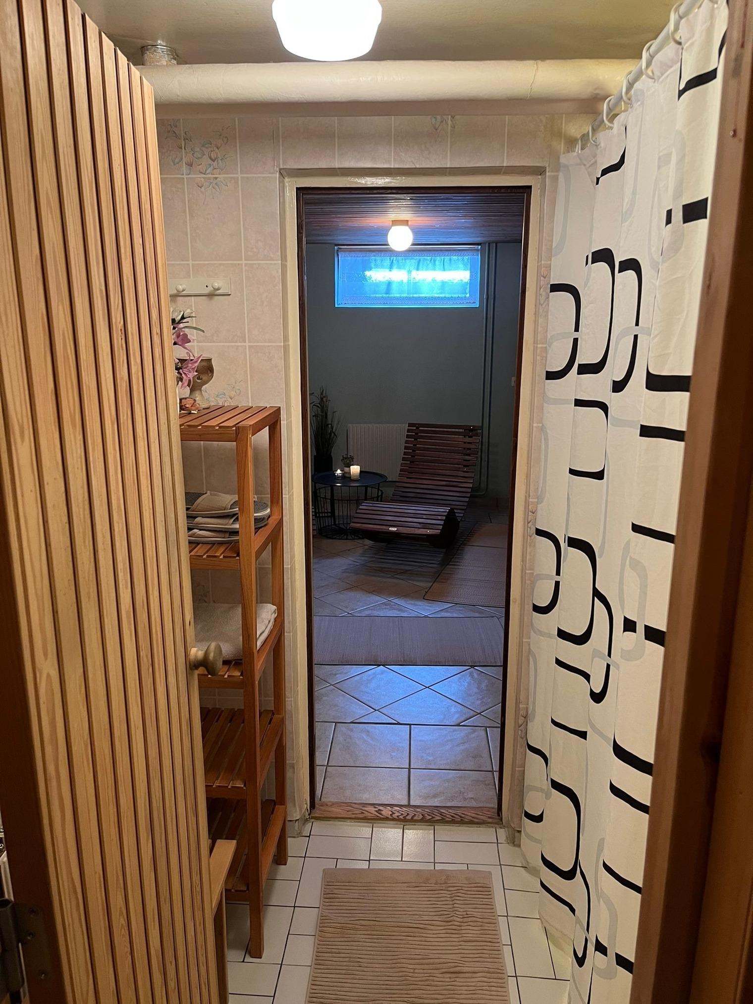 Die kleine aber feine Sauna finden Sie im Untergeschoss. Bitte nutzen Sie diese ohne Öle oder Aufgüsse auf dem Ofen. Nach dem Einschalten der Sauna warten Sie, bis sie auf Temperatur gekommen ist. Genießen Sie anschließend die Hitze. Bitte benutzen Sie immer ein Handtuch während der Saunagänge. Sobald Sie Ihre Saunagänge beendet haben, vergessen Sie bitte nicht, die Sauna wieder auszuschalten!