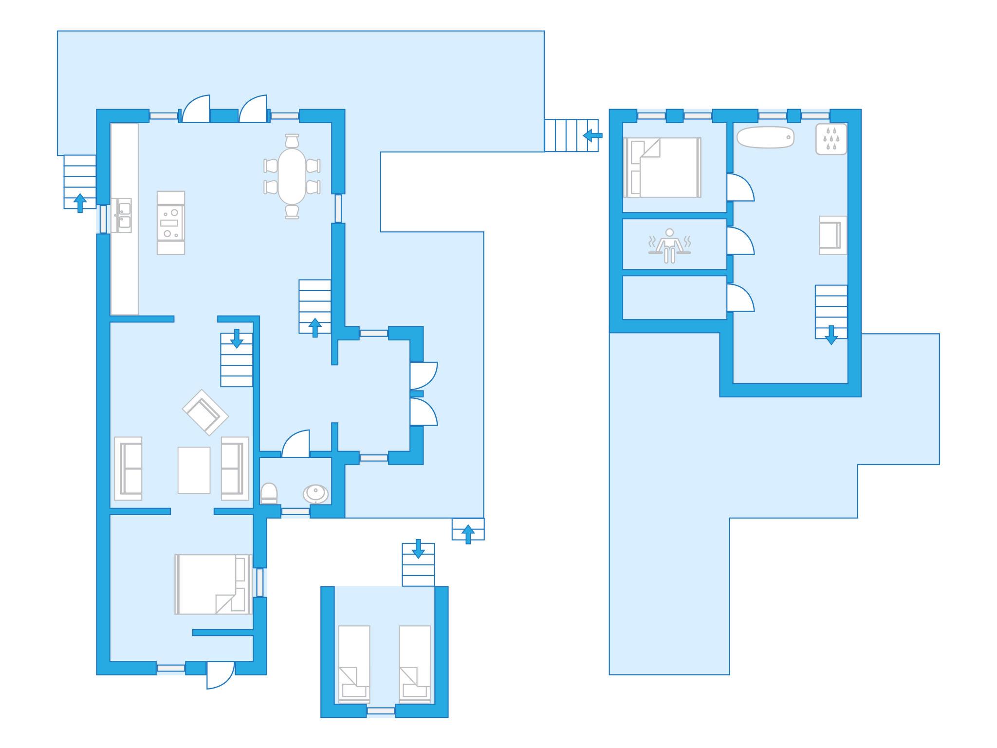 "Nedre Gärdsjö", 4-room house 116 m2 on 3 levels. Bright, with sloping ceilings, comfortable and tasteful furnishings: living room, window onto the courtyard. 1 open room with curtain with 1 french bed (160 cm, length 200 cm). Large, open kitchen 33 m2 (oven, dishwasher, 4 induction hot plates, microwave, freezer, electric coffee machine, cooking island) with dining table, satellite TV and digital TV (flat screen), radio and hi-fi system. Exit to the terrace. Sep. WC. Heating, underfloor heating. On the lower ground floor: 1 room with 1 double bed (160 cm, length 200 cm). Bath/shower, sep. WC, Sauna. Heating. Upper floor: (steep stair) open sleeping alcove with sloping ceilings, ceiling height 90 - 200 cm with 1 french bed (160 cm, length 200 cm). Wooden floors. Large terrace 82 m2, lawn 300 m2. Terrace furniture, barbecue, deck chairs (6), sitting area. Very beautiful view of the lake and the forest. Facilities: washing machine, sauna. Internet (WiFi, free). Please note: non-smoking house. Freezer approx. 200 l. Instead of an enclosed bedroom, some sleeping areas are located in an open-plan area (gallery, alcove, etc.).