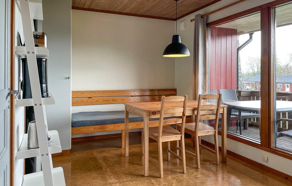 Verbringen Sie Ihren Urlaub in Degeberga Stugby, dem Tor zur beliebten Region Österlen. Die ruhige Lage am Waldrand bietet beste Voraussetzungen für entspannte Tage mit der Familie. Erleben Sie die typische schwedische Hüttenatmosphäre und entdecken Sie von hier aus die reizvolle Umgebung rund um Kristianstad, Åhus, Malmö und Lund. Das Haus ist funktional eingerichtet und überzeugt mit seinem einfachen, hellen Wohnbereich. Machen Sie es sich auf den Sesseln oder dem Sofa gemütlich und wärmen Sie sich an kühleren Abenden am Kaminofen. Bereiten Sie einfache Mahlzeiten in der kompakten Küchenzeile zu und genießen Sie diese gemeinsam am Esstisch mit Blick ins Grüne. Große Fenster lassen viel Licht herein und sorgen für eine freundliche Stimmung im Innenraum.