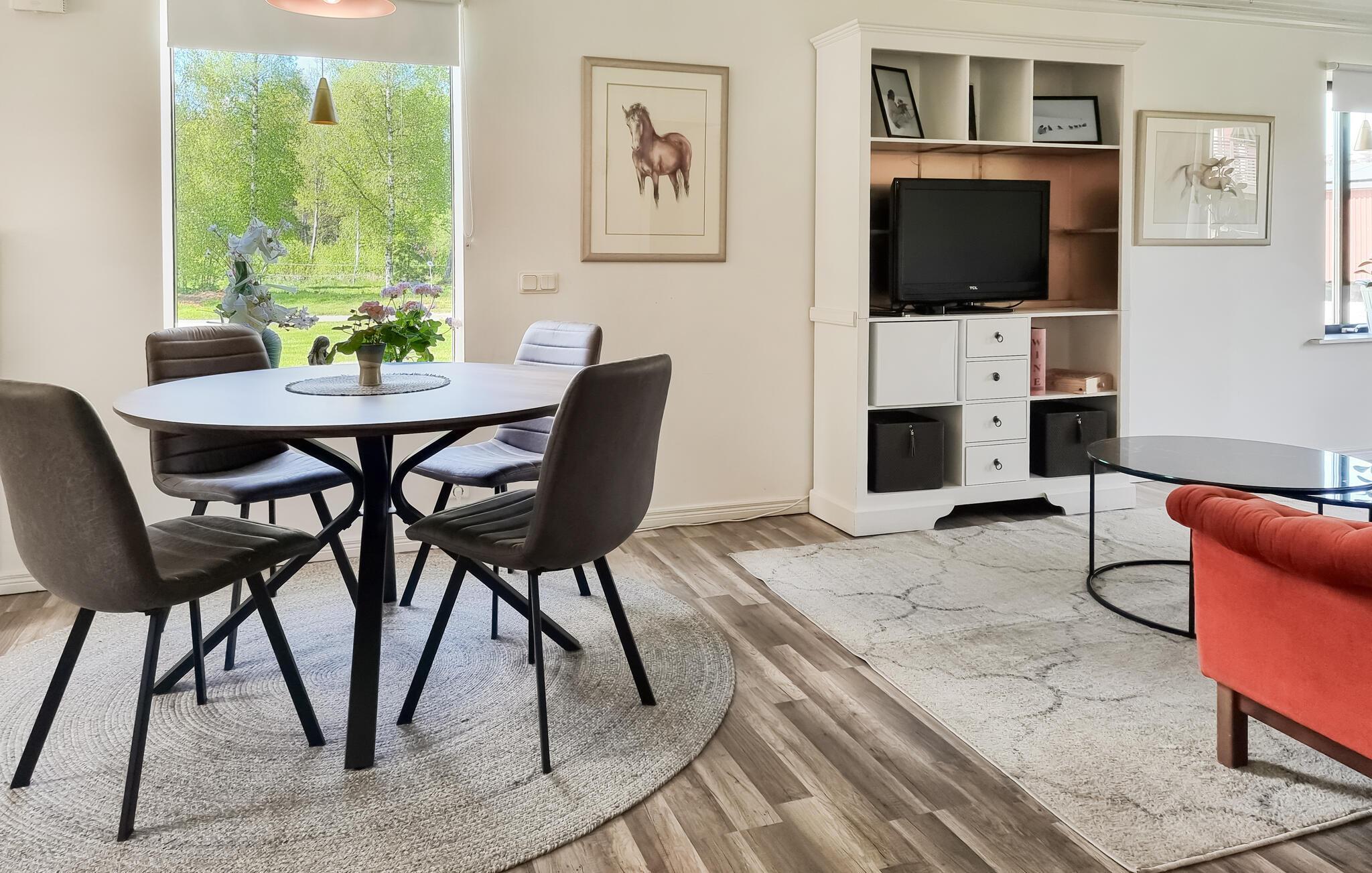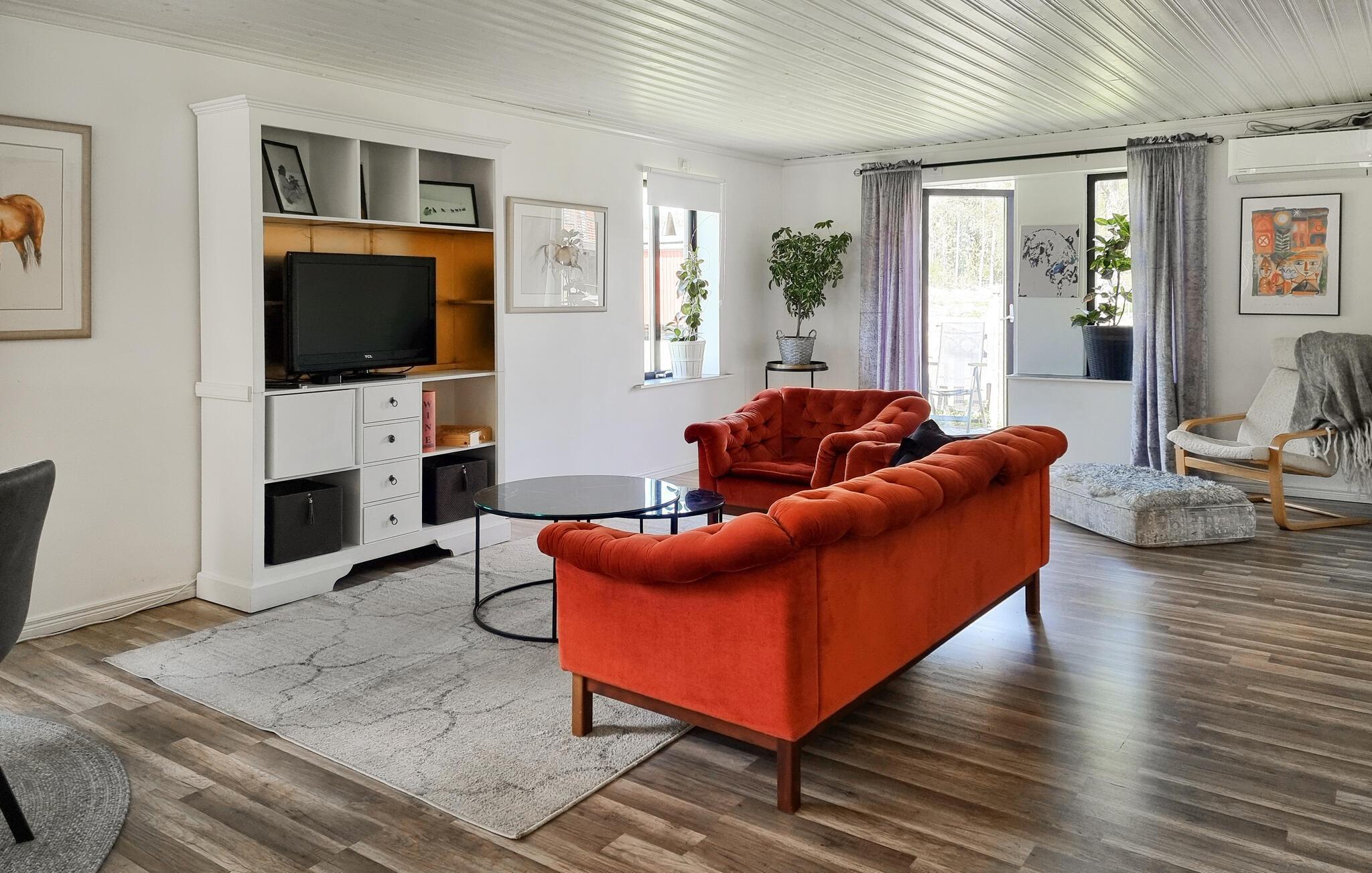 Mehrere schöne Sitzplätze im Freien bieten die Möglichkeit, die frische Luft und den Ausblick auf die grüne Umgebung zu genießen. Auf dem angrenzenden Hof gibt es Pferde, und die umliegenden Wälder laden zu Erkundungstouren ein. Hier können Sie auch Pilze und Beeren sammeln. Am nahe gelegene See Lensjön kommen Badefreunde und Angler voll auf ihre Kosten.