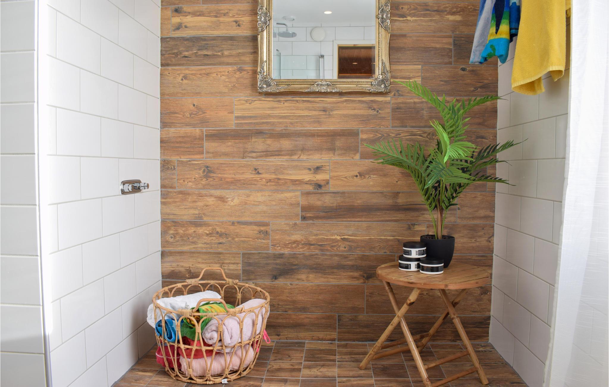 Bathroom has entrance from the outside
