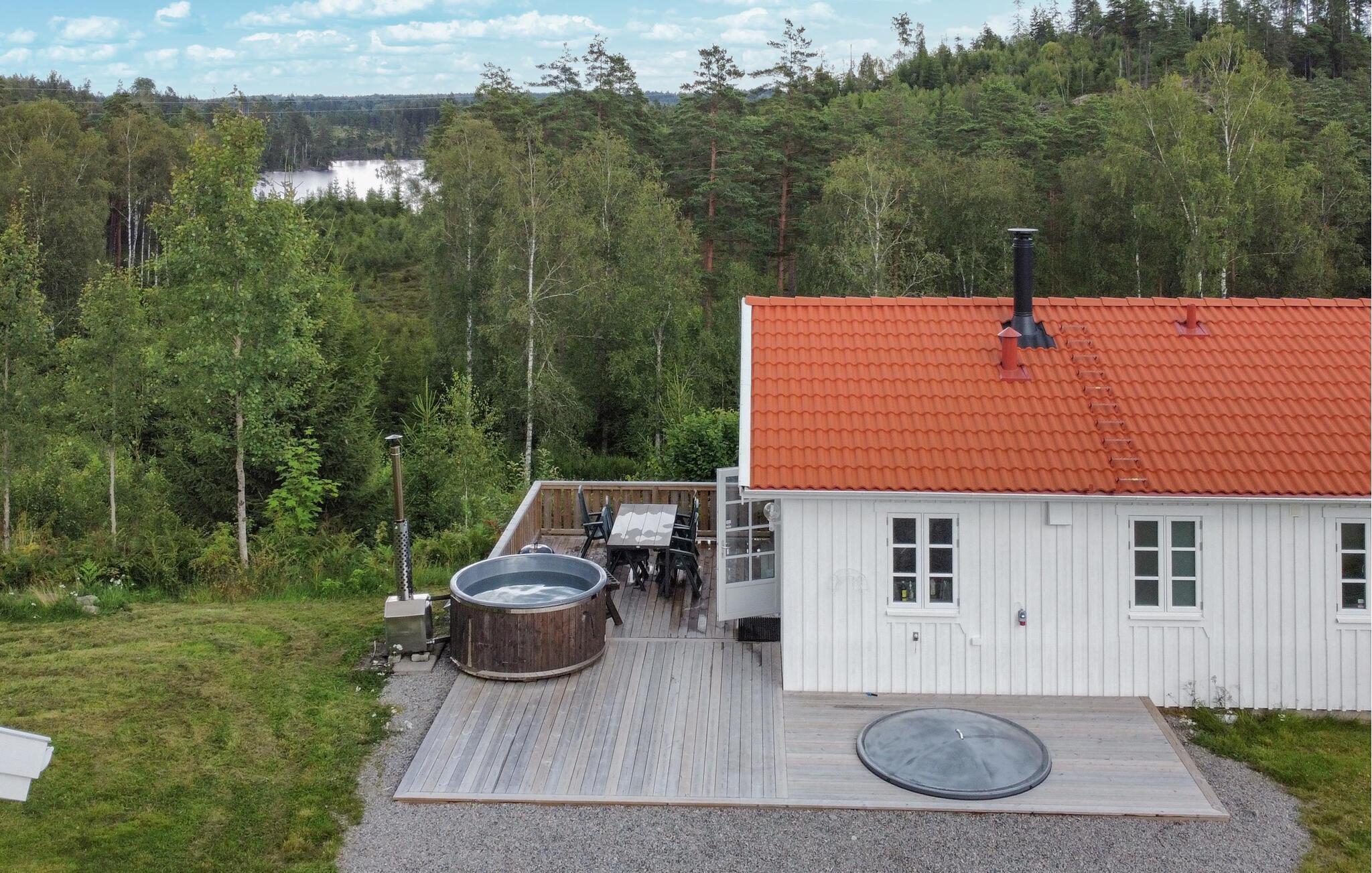 Willkommen in diesem gemütlichen Ferienhaus in Gislaved, wo Entspannung und Natur aufeinandertreffen. Diese charmante Unterkunft bietet Ihnen nicht nur eine einladende Atmosphäre, sondern auch einen eigenen Whirlpool für erholsame Stunden im Freien. Die geschmackvoll eingerichteten Innenräume strahlen Gemütlichkeit aus und laden Sie dazu ein, nach einem aktiven Tag zur Ruhe zu kommen. Genießen Sie die warme Ausstrahlung des Holzes und die harmonische Gestaltung, während Sie sich auf der Terrasse mit einem Blick ins Grüne entspannen.