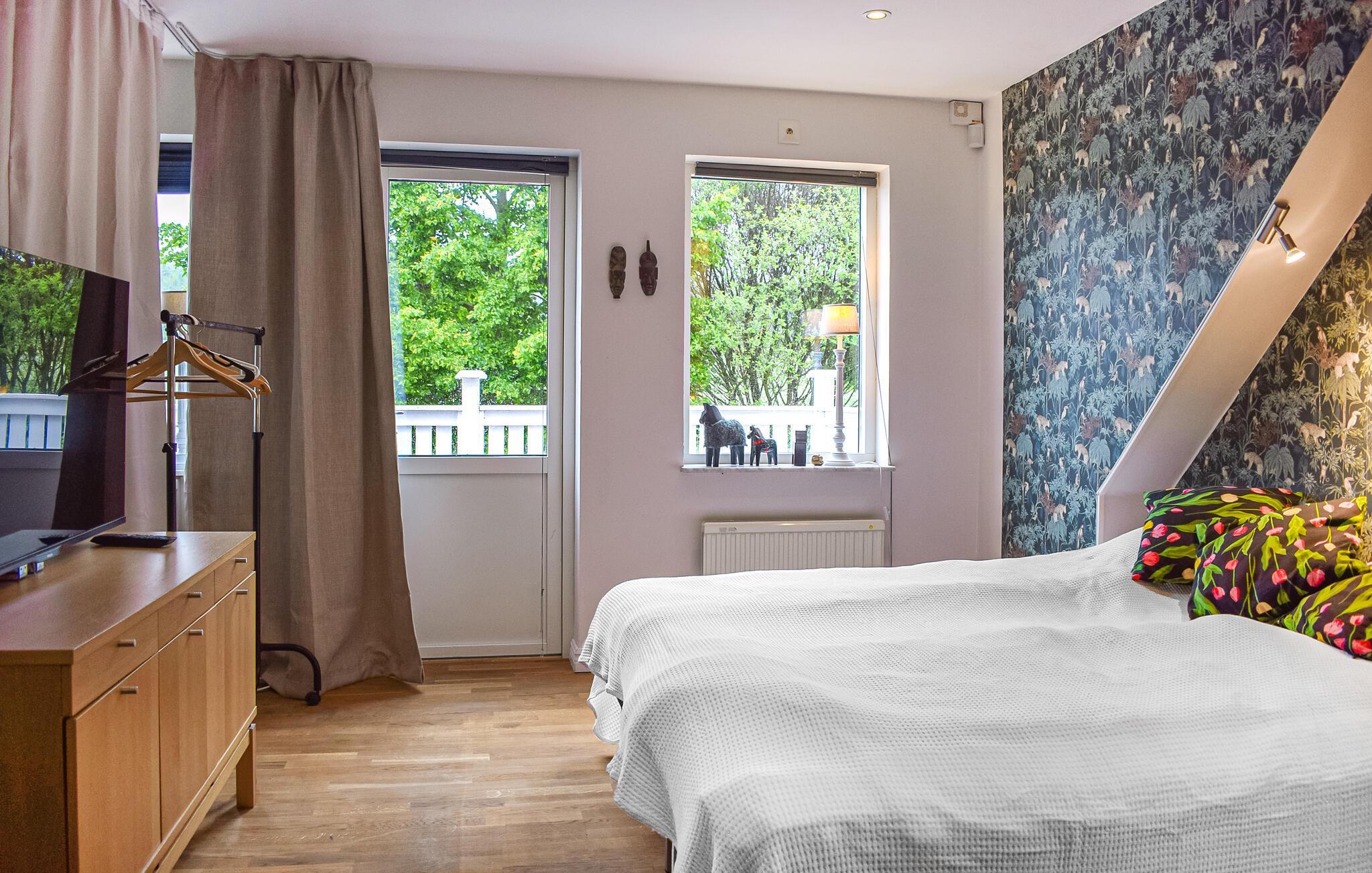 Willkommen in diesem Luxushaus in ungestörter Lage in kurzer Entfernung zur Stadt, Genarp. Dieses schöne, dicht am Wald gelegene Haus mit eigenem Ruderboot lädt zu wunderschönen Ferientagen mit Angelabenteuern ein. In der großen Küche steht gemeinsame Zauberei auf dem Programm. Das kinderfreundliche Haus ist stilvoll und mit Liebe zum Detail eingerichtet. Viele lauschigen Ecken als kuschelige Entspannungsorte für die ganze Familie. Am langen Massivholztisch unter den Kronleuchtern lassen sich lustige Spieleabende mit Erfrischungen und Snacks wunderbar veranstalten. Machen Sie es sich in den Gartenmöbeln auf dem Steg gemütlich und genießen Sie frische Erdbeeren und Limonade oder Cocktails. Gehen Sie die wenigen Schritte zum See und versuchen Sie Ihr Glück beim Angeln.
