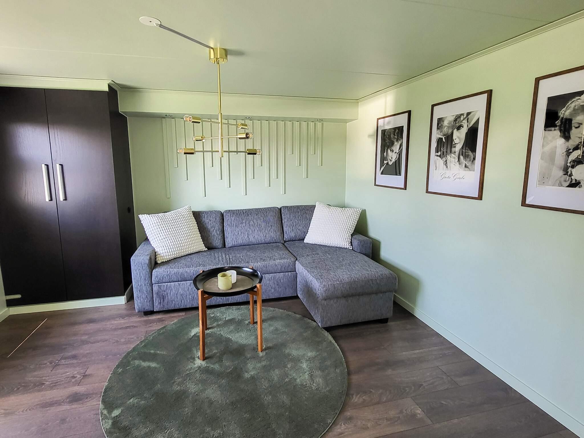Frisch renoviert im Jahr 2025. Diese helle und geschmackvoll eingerichtete Erdgeschosswohnung befindet sich in einer ruhigen Wohngegend mit schönem Meerblick und hohem Standard im kleinen Fischerort Barrevik am Rande von Hälleviksstrand im Westen von Orust.
