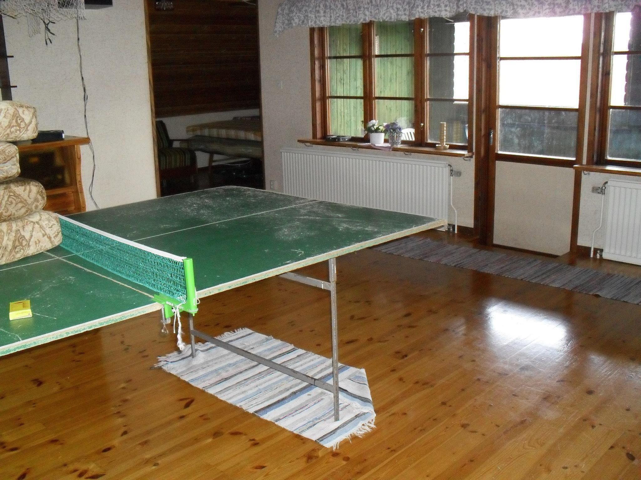 Would you like to escape from excessive consumption during your holiday and have more time for your family/friends? Then this house is just right for you. You'll find everything you need here, but no superfluous luxuries that often overshadow the essentials. You have 150 m² of living space on each of the two floors. On the upper floor there are two bedrooms, each with a double bed (1.80 m x 1.90 m) and a single bed (0.90 m x 1.90 m), as well as a bedroom with a bunk bed (0.90 m x 1.90 m). There is also a sleeping alcove with a single bed (0.90 m x 1.90 m) on this floor. There is also a 100 m² living room with a TV area, bar area, table tennis table and football table. Plenty of space for playing games or cosy get-togethers. A bathroom with shower, washbasin and toilet is also available on the upper floor. On the ground floor there is a fourth bedroom with a double bed (1.80 m x 1.90 m) and a baby cot. Two further bedrooms with a double bed (1.80 m x 1.90 m) and a room with bunk beds (each 0.90 m x 1.90 m) and a single bed (0.90 m x 1.90 m) are also located on the lower floor of the house. There is also an electronic organ in the entrance hall. A large eat-in kitchen is fully equipped and has a fridge, oven, hob, dishwasher, coffee machine, microwave, kettle and toaster. There is also a cast-iron wood-burning stove for cosy warmth. From the kitchen you enter a cosy dining room that can easily seat 16 people. There is also a living room and a large hallway. There is also a bathroom with toilet, bidet, shower and washing machine on the ground floor. Adjacent to this is a spacious sauna. Due to its size, the house offers plenty of space to run around and play and is therefore ideal for several families, a large family or for supervised groups. The large living room and dining room mean that joint activities can also take place here. The Wi-Fi connection is free, as the owners live on the neighbouring property and the connection is via their router. A new pellet heating system with radiators has been installed.
