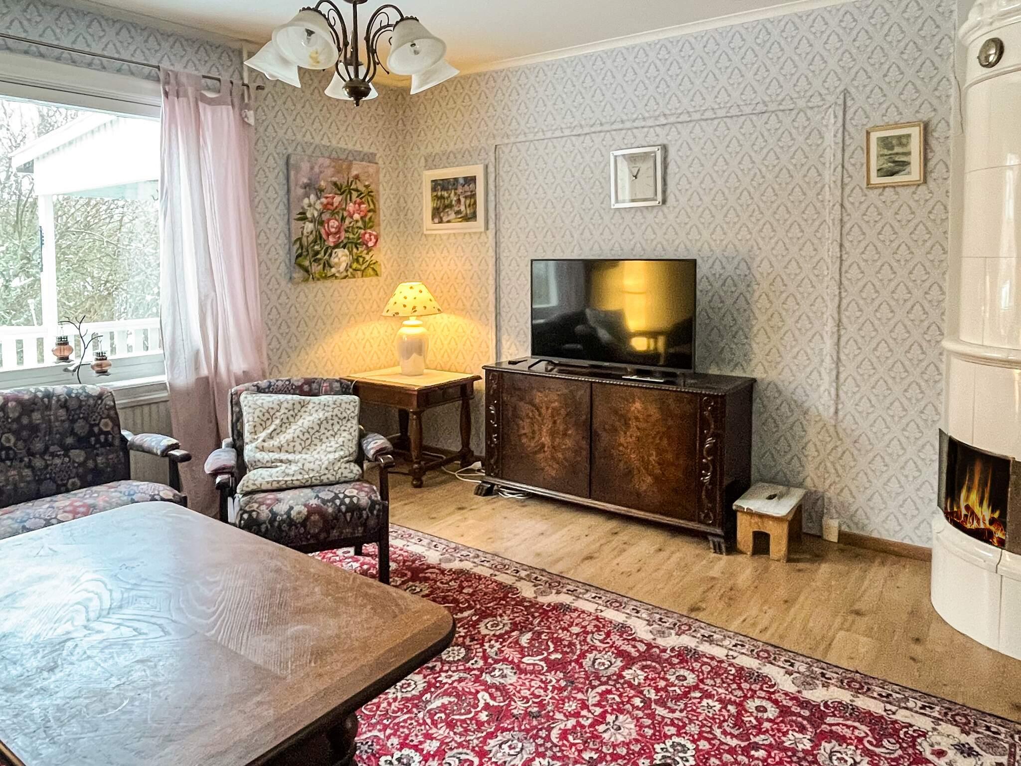 Das Haus verfügt über eine Küche mit Essbereich. Im Wohnzimmer gibt es viele Sitzgelegenheiten vor dem Fernseher mit Chromecast. Für kühlere Abende gibt es einen Kachelofen. Nutzen Sie dafür bitte Ihr eigenes Brennholz.
