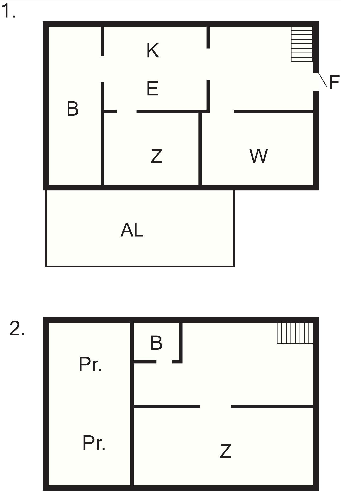 Im Eingangsbereich befindet sich ein geräumiges Badezimmer mit Badewanne und Dusche. Im Obergeschoss finden Sie außerdem eine einfache Toilette mit Waschbecken vor.