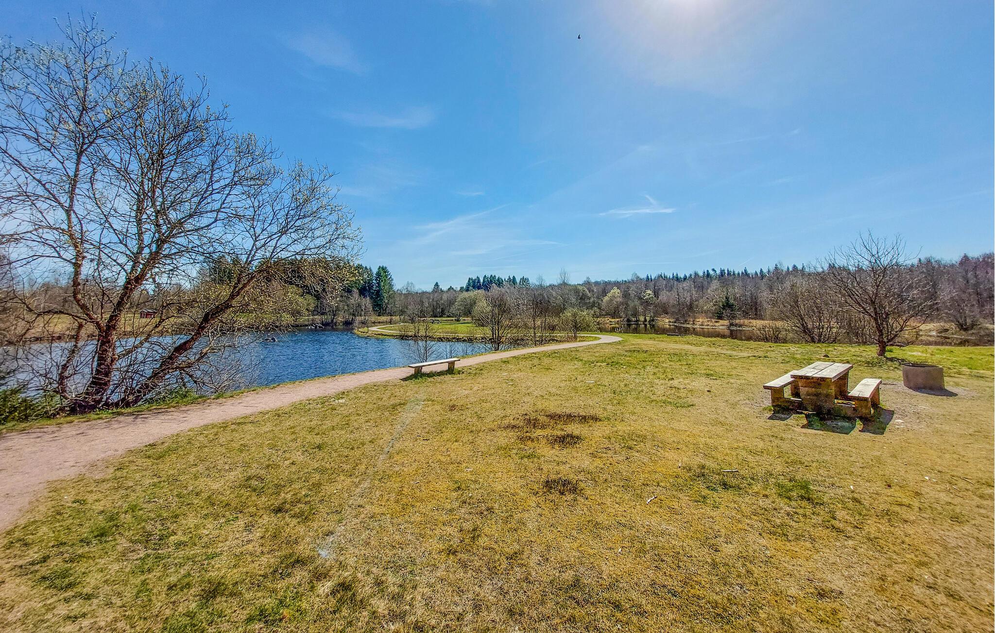 Ein Ruderboot steht für ruhige Erkundungstouren auf dem See bereit. Das Haus verfügt über einen eigenen Zugang zum Wasser und zum Steg, der mit dem Hauseigentümer geteilt wird. Teile des Grundstücks bieten Ihnen Rückzugsmöglichkeiten inmitten der atemberaubenden Natur Skånes.