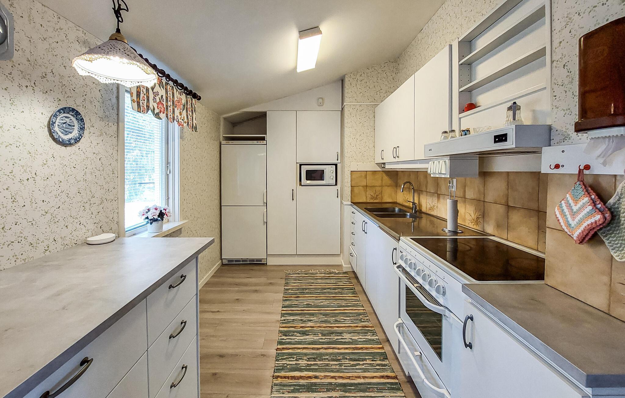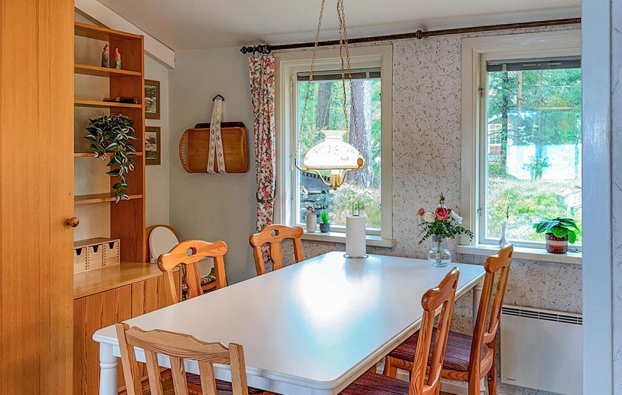 Verbringen Sie Ihre Auszeit in diesem liebevoll eingerichteten Sommerhaus direkt am Ufer des Sees Vitasjön. Starten Sie den Tag mit einem Blick auf das ruhige Wasser, lauschen Sie dem Wind in den Bäumen und lassen Sie den Alltag hinter sich. Im wohnlichen Innenbereich erwarten Sie große Fenster und ein herrlicher Ausblick auf den See. Machen Sie es sich auf der großzügigen Eckcouch bequem, lesen Sie ein Buch oder genießen Sie gemeinsame Abende mit Spielen und anregenden Gesprächen. Nutzen Sie die Küche für ausgiebige Kochabende oder bereiten Sie ein schnelles Frühstück vor, bevor es hinaus in die Natur geht. Der angrenzende Essbereich lädt zu gemeinsamen Mahlzeiten ein, während der Kaminofen für gemütliche Wärme sorgt.