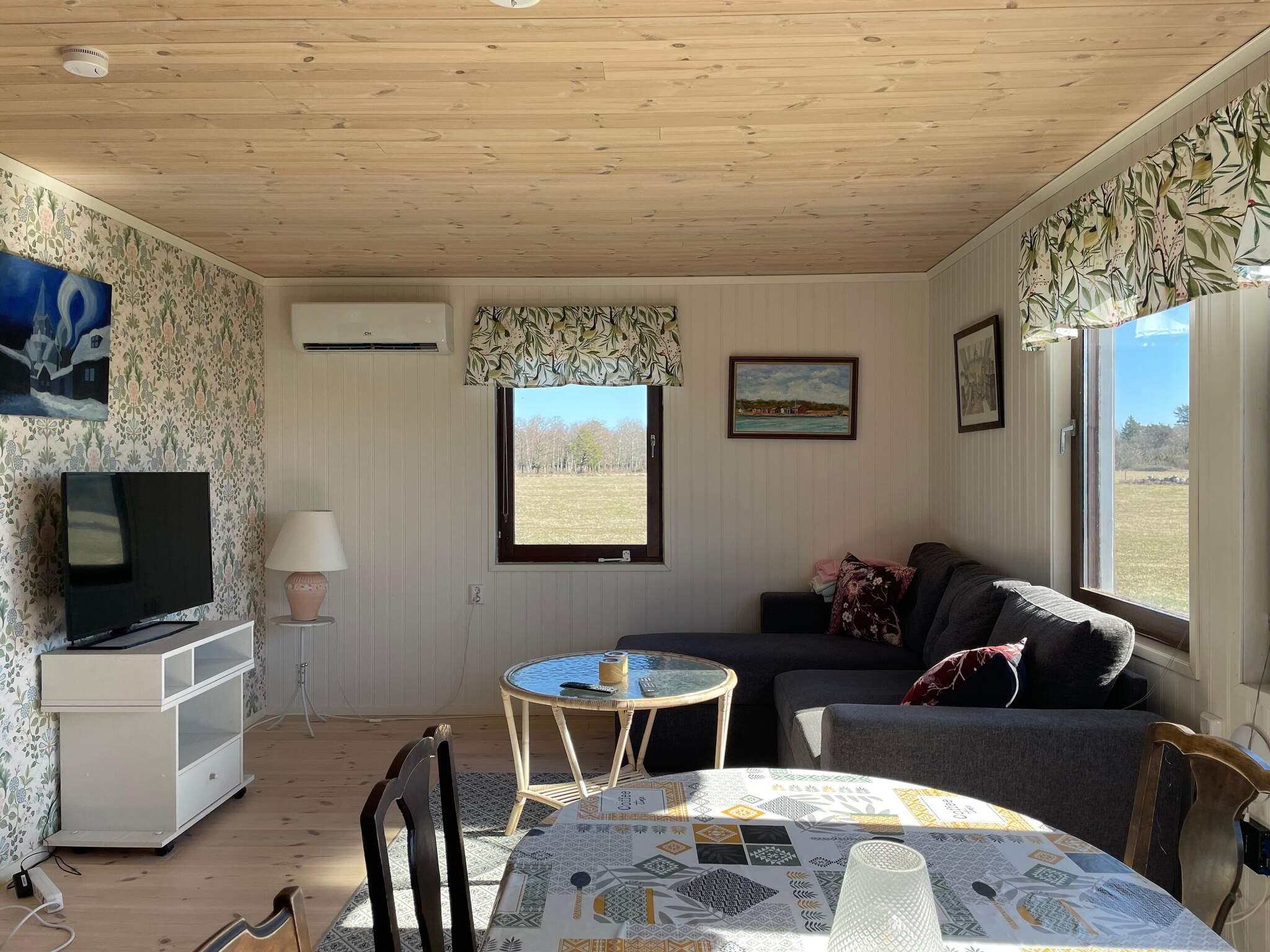 Here you live in a very pleasant cottage with scenic surroundings. Newly built cottage from 2024 with social open spaces between kitchen and living room with comfortable sofa bed for two. Comfortable bedroom with double bed (140 cm), bathroom with shower cabin, toilet and washing machine. Patio (wooden deck under construction) that invites you to nice dinners and relaxing moments to the birds singing. Located on a large plot with beautiful views, the nice owner lives in his house on the same plot.