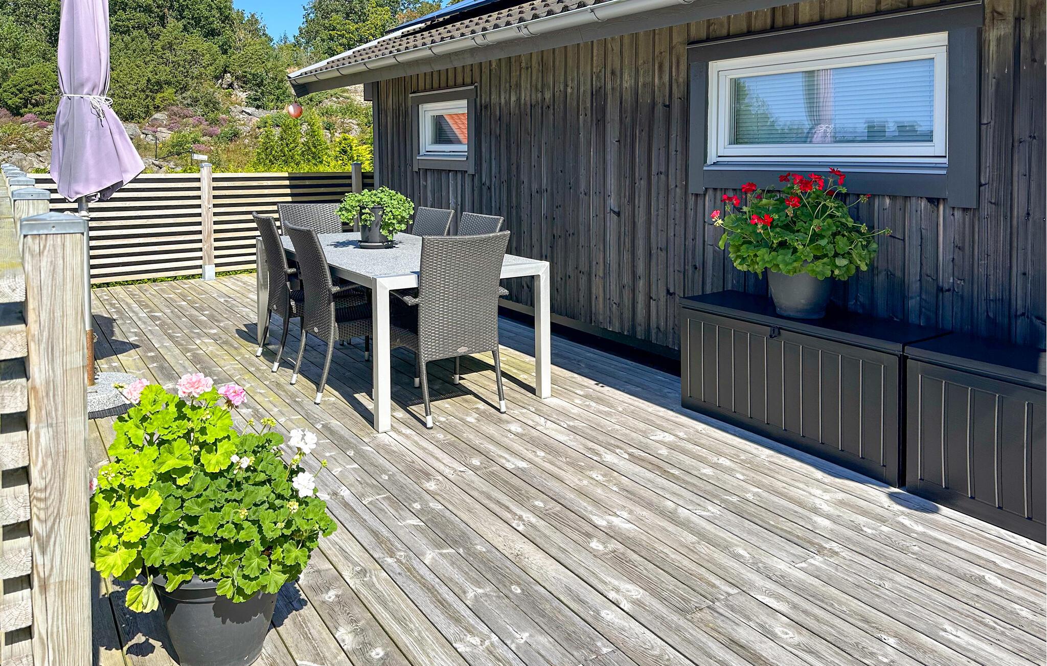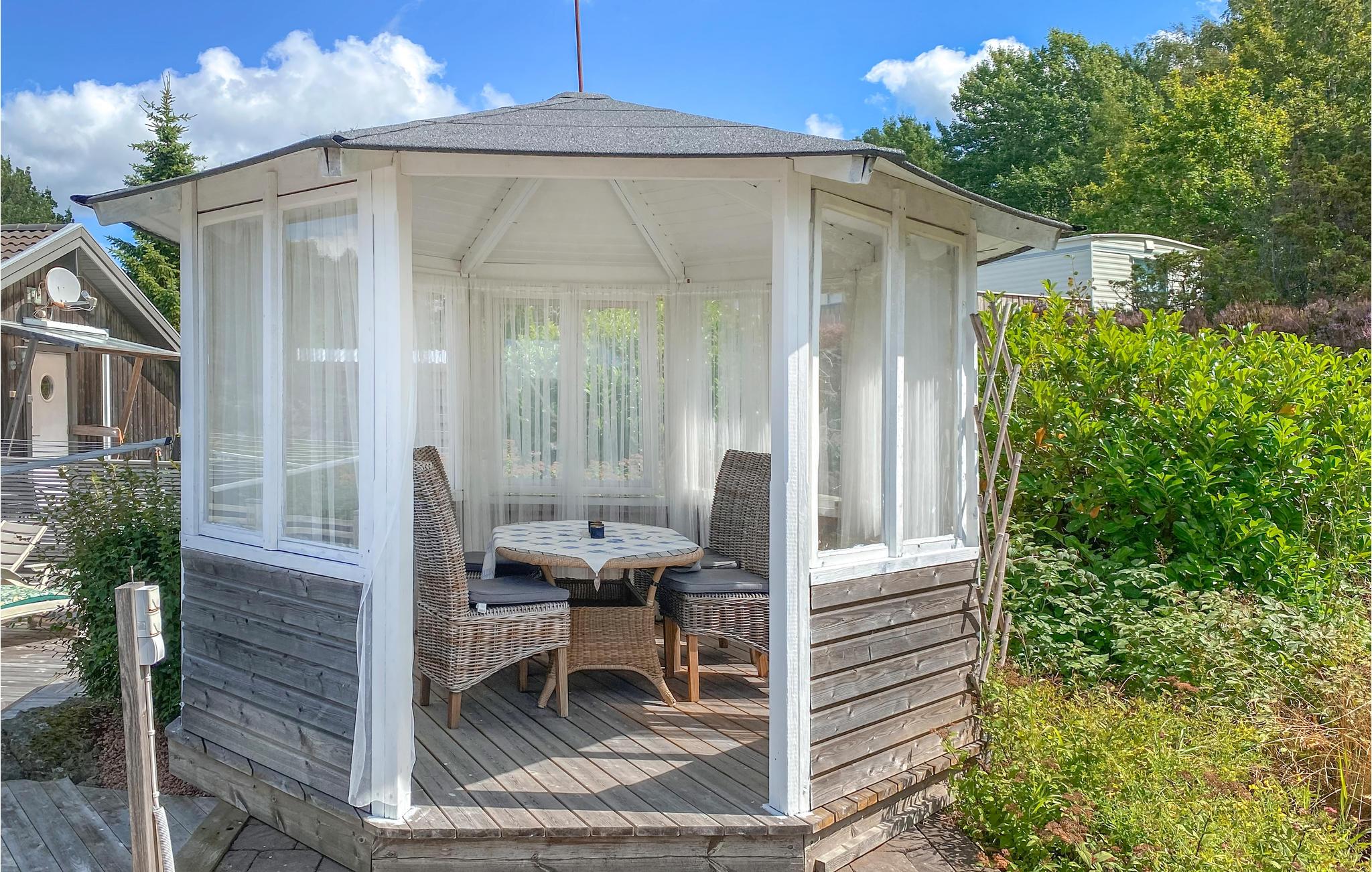 Hoch gelegenes Ferienhaus auf zwei Ebenen. Von der Terrasse aus blicken Sie auf die schöne Küste von Bohus. Gemütliche Unterkunft mit zwei Schlafzimmern und einem Schlafsofa im Wohnzimmer und in der Küche. In der Nähe von kinderfreundlichen Badestellen und in der Nähe von Klippen können Sie aufregende Bade- und Angelausflüge unternehmen. Wenn Sie gerne einkaufen, gibt es Göksäter "Lilla Ullared" auf der Insel. Ansonsten ist eines der größten Einkaufszentren in Westschweden nur 25 Minuten vom Ferienhaus entfernt. Hier gibt es Restaurants und Geschäfte, die alles vorstellbare zu sehr günstigen Preisen bieten. Verpassen Sie nicht Uddevalla, eine sehr schöne Hafenstadt mit einer fantastischen schönen Promenade, Emaus, der Bauernhof für Kinder oder eine Fahrt mit den Schärenbooten. Weitere schöne Ausflugsziele in Orust sind Gullholmen, Mollösund und Kärringön, die ganz in der Nähe liegen.