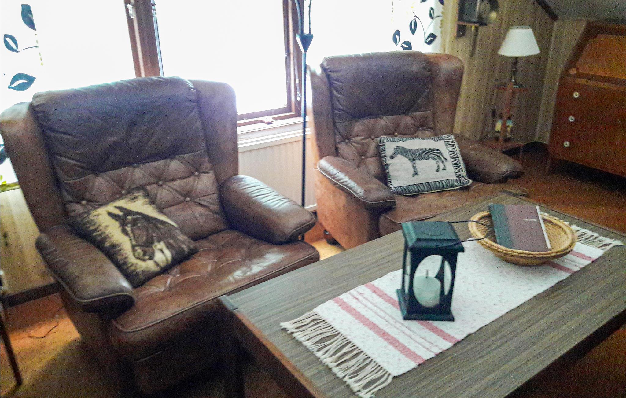 Verbringen Sie eine entspannte Auszeit in diesem gemütlichen eingerichteten Ferienhaus in der Nähe von Holsljunga im Landesteil Västergötland. Nur einen Katzensprung vom See Lilla Hallången entfernt, bietet dieses Haus eine ideale Lage für Naturfreunde, Angler und Familien. Betreten Sie das rustikale Ferienhaus und machen Sie es sich in der Wohnstube mit ihren bequemen Sesseln gemütlich. Die mit Holz verkleideten Wände schaffen eine warme Atmosphäre, während die niedrige Deckenhöhe für ein uriges Ambiente sorgt.