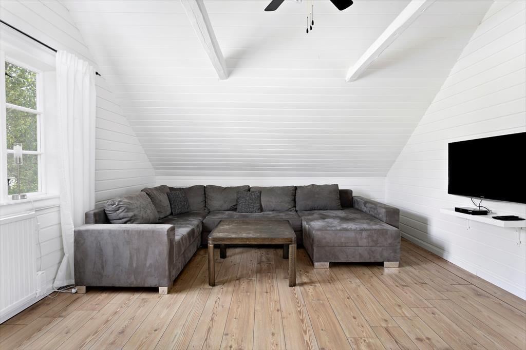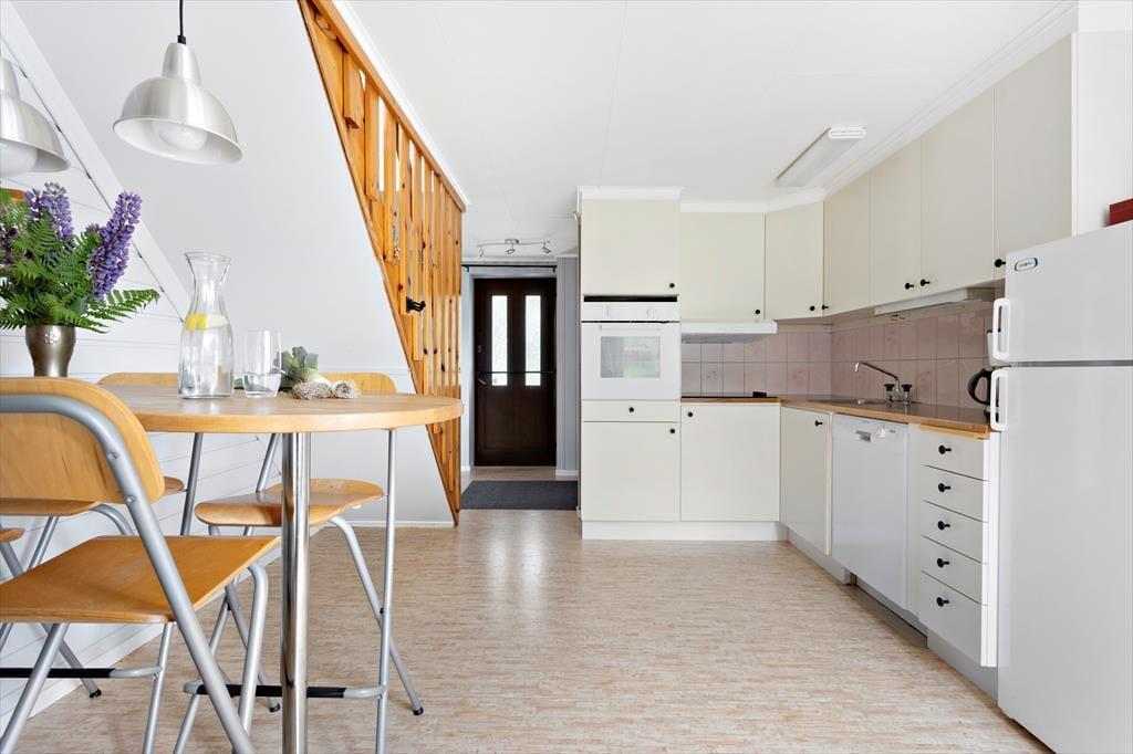 Das moderne und laufend renovierte Ferienhaus bietet mit 110 m² Wohnfläche viel Platz für einen Familienurlaub. Im Erdgeschoss befinden sich ein großes Wohnzimmer, mit Sitzecke und Esstisch, sowie zwei Schlafzimmer, eines davon mit einem 140 cm breiten Doppelbett ausgestattet, das andere mit einem 90 cm breiten Einzelbett mit integriertem Ausziehbett für eine weitere Person. Eine sehr gut ausgestattete Wohnküche mit Elektroherd, separatem Backofen, Kühlschrank mit Gefrierfach, Senseo-Kaffeepadmaschine, Geschirrspüler und Esstisch mit Hockern, sowie ein kleiner Hausarbeitsraum befinden sich ebenfalls im Erdgeschoss. Im Obergeschoss gibt es ein weiteres, zur Treppe hin offenes Wohnzimmer mit gemütlichem Sofa und SAT-TV mit deutschen Programmen sowie ein drittes Schlafzimmer mit Doppelbett und ein freundliches, helles Duschbad mit WC, Handwaschbecken und Waschmaschine. Das Haus hat fließend kaltes und warmes Wasser und kann elektrisch beheizt werden. Den Gästen stehen weiterhin eine überdachte Veranda auf der Gartenseite, Sommermöbel und Grill zur Verfügung.