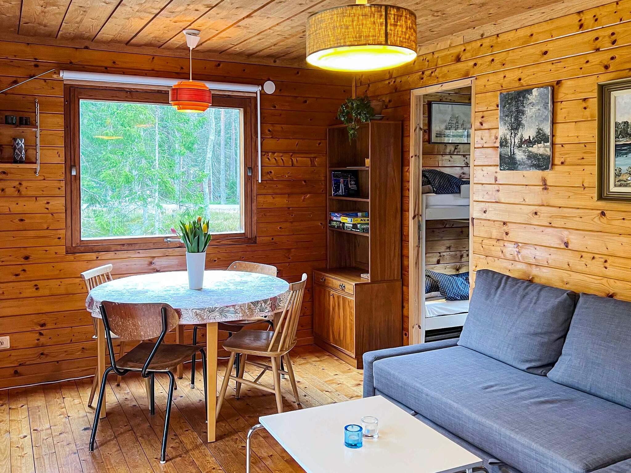 Das Ferienhäuschen ist bequem mit dem Auto erreichbar und steht dennoch in der Nähe von schönen Badestellen und Ausflugszielen. Es verfügt über ein Schlafzimmer mit einem 200 cm langen und 80 cm breiten Etagenbett und ein 140 cm breites Schlafsofa für zwei Personen im Wohnzimmer. Große Fenster mit Blick ins Grüne und ein gemütlicher Kamin laden an kühlen Tagen zum Verweilen ein. Fernseher und Spiele sorgen für gesellige Stunden. Eine kleine Küche mit Esstisch steht ebenfalls zur Verfügung. Die unverputzten Ziegelwände verleihen dem Haus einen rustikalen Charme. Das Badezimmer ist mit Dusche und WC ausgestattet.
