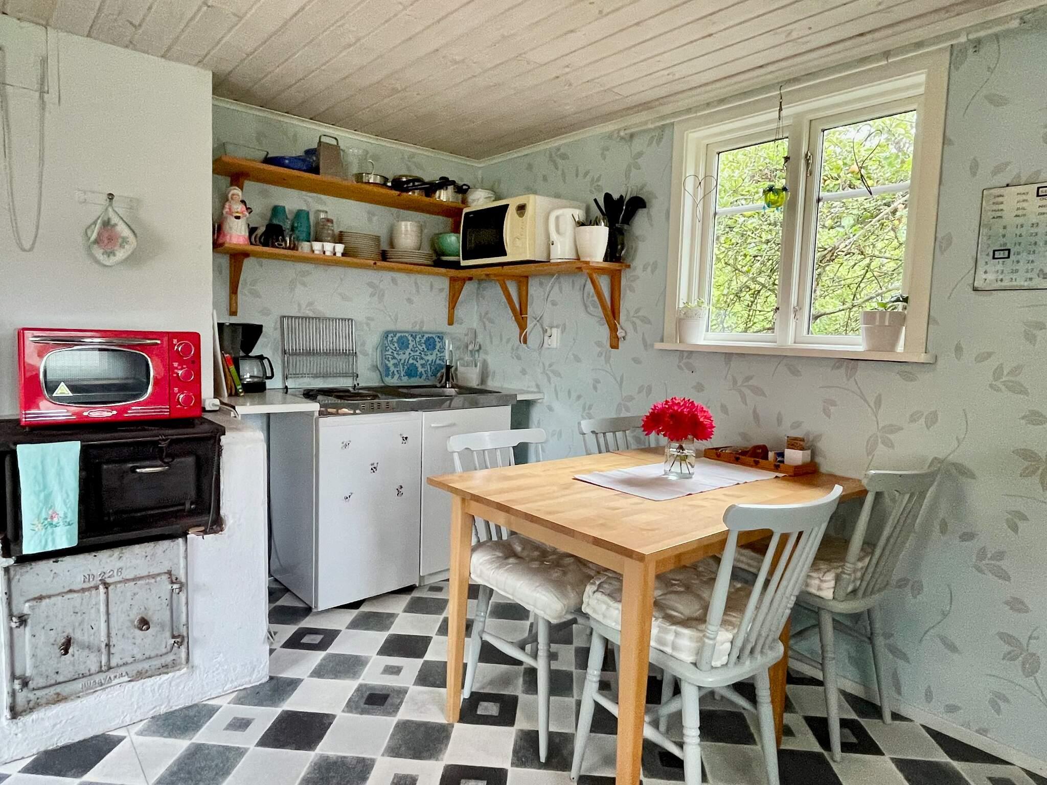 Sie verfügen im Häuschen über ein etwas größeres Wohnzimmer mit einer gut ausgestatteten Küchenzeile, einem gemütlichen Essbereich und einem Wohnbereich mit einem Sofa, das zum Bett umfunktioniert werden kann. TV, WLAN und Chromecast verfügbar. Die Küchenzeile ist mit einem Tischherd, einer Mikrowelle, Kochplatten, einem Kühlschrank mit Gefrierfach, einer Kaffeemaschine und einem Wasserkocher ausgestattet. Im Schlafzimmer stehen Ihnen ein Etagenbett und ein Einzelbett zur Verfügung. Das Badezimmer verfügt über eine Toilette, ein Waschbecken und eine Dusche.