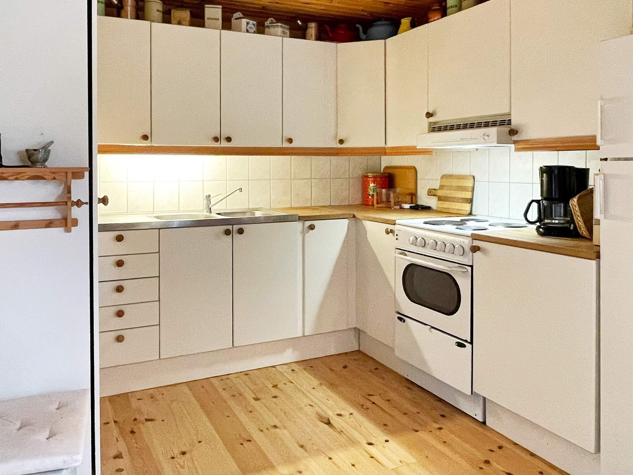 Das Ferienhaus hat ein großes Wohnzimmer mit Sofas. Sie haben eine Küche mit Essbereich und fast allem, was Sie brauchen. Es gibt zwei Schlafzimmer; eines mit Doppelbett, das andere mit einem Einzelbett. Das Sofa im Wohnzimmer kann in ein zusätzliches Doppelbett umgewandelt werden. Badezimmer mit Toilette, Waschbecken und Dusche.
