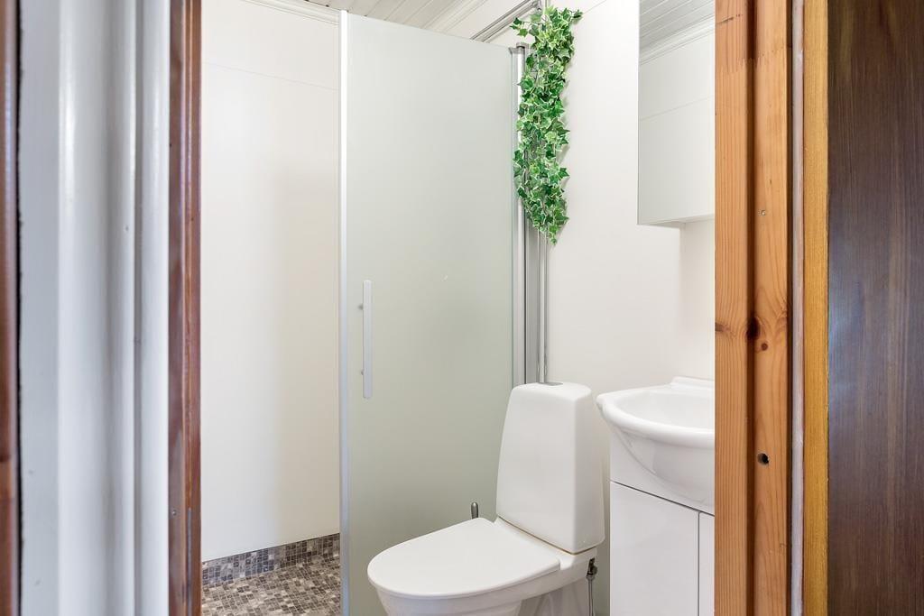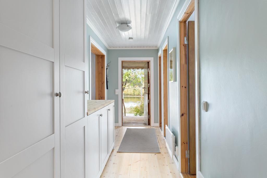 Das geräumige Ferienhaus bietet auf etwa 80 m² Wohnfläche Platz für bis zu 7 Personen. Es ist mit einem Wohnzimmer mit offenem Kamin, Sitz- und Essecke sowie SAT-TV mit deutschen und schwedischen Programmen ausgestattet und verfügt über eine moderne Küche, die mit Elektroherd mit Backofen, Mikrowelle, Kaffeemaschine, Wasserkocher sowie Kühl- und Gefrierschrank ausgestattet ist. Darüber hinaus gibt es drei Schlafzimmer, eines davon mit einem Doppelbett und einem Etagenbett möbliert, das zweite mit zwei Einzelbetten und das dritte wiederum mit einem Doppelbett. Weiterhin verfügt das Haus über ein Duschbad mit WC und Handwaschbecken. In einem separaten Raum steht eine Waschmaschine. Es hat fließend kaltes und warmes Wasser und kann elektrisch beheizt werden. Von der großen, teilüberdachten Veranda, die mit Sommermöbeln und Grill ausgestattet ist, hat man einen sehr schönen Blick auf die Ostsee. Nach Absprache mit den Vermietern kann den Gästen auch ein Kinderbett sowie ein Kinderhochstuhl zur Verfügung gestellt werden.