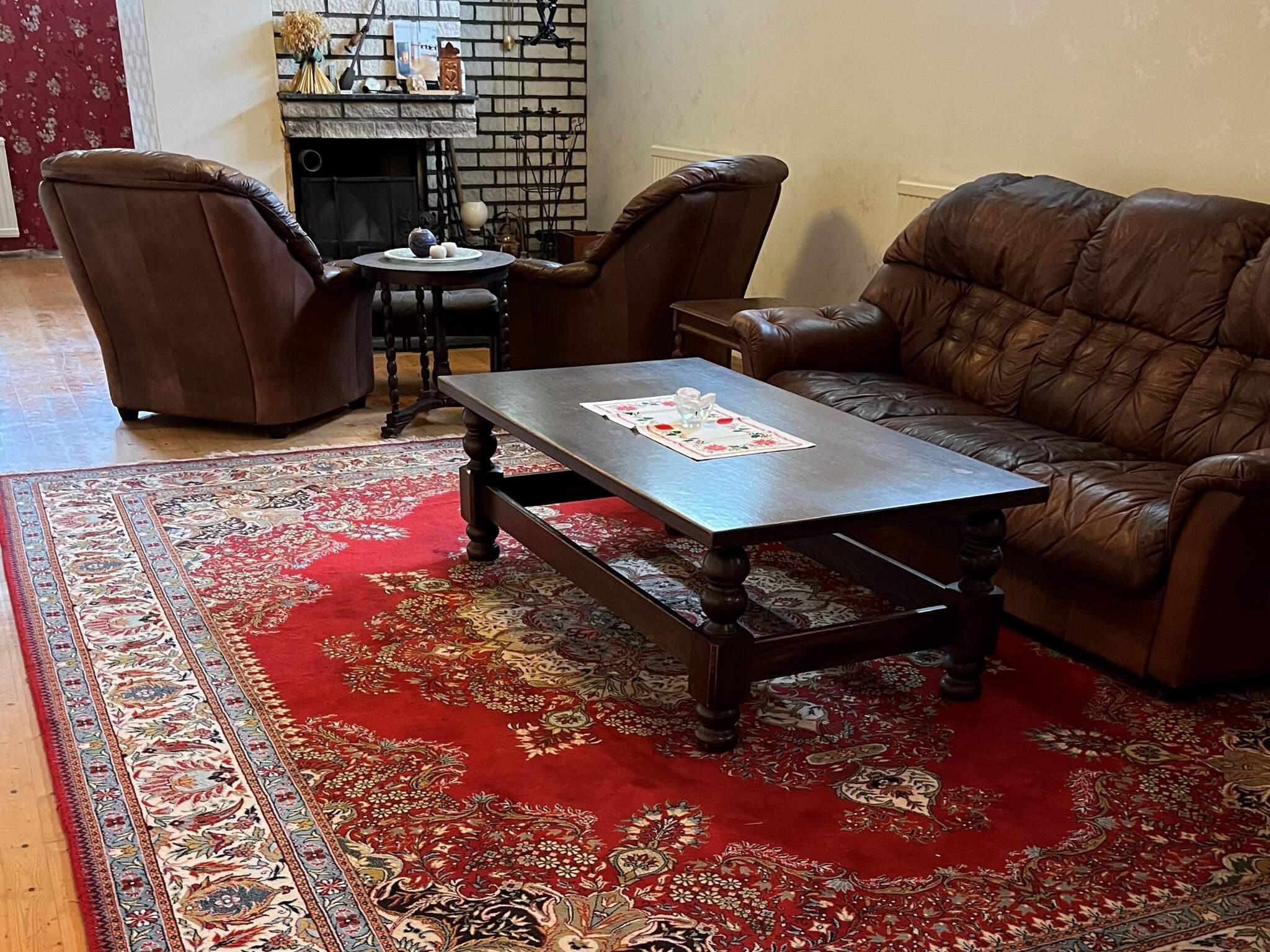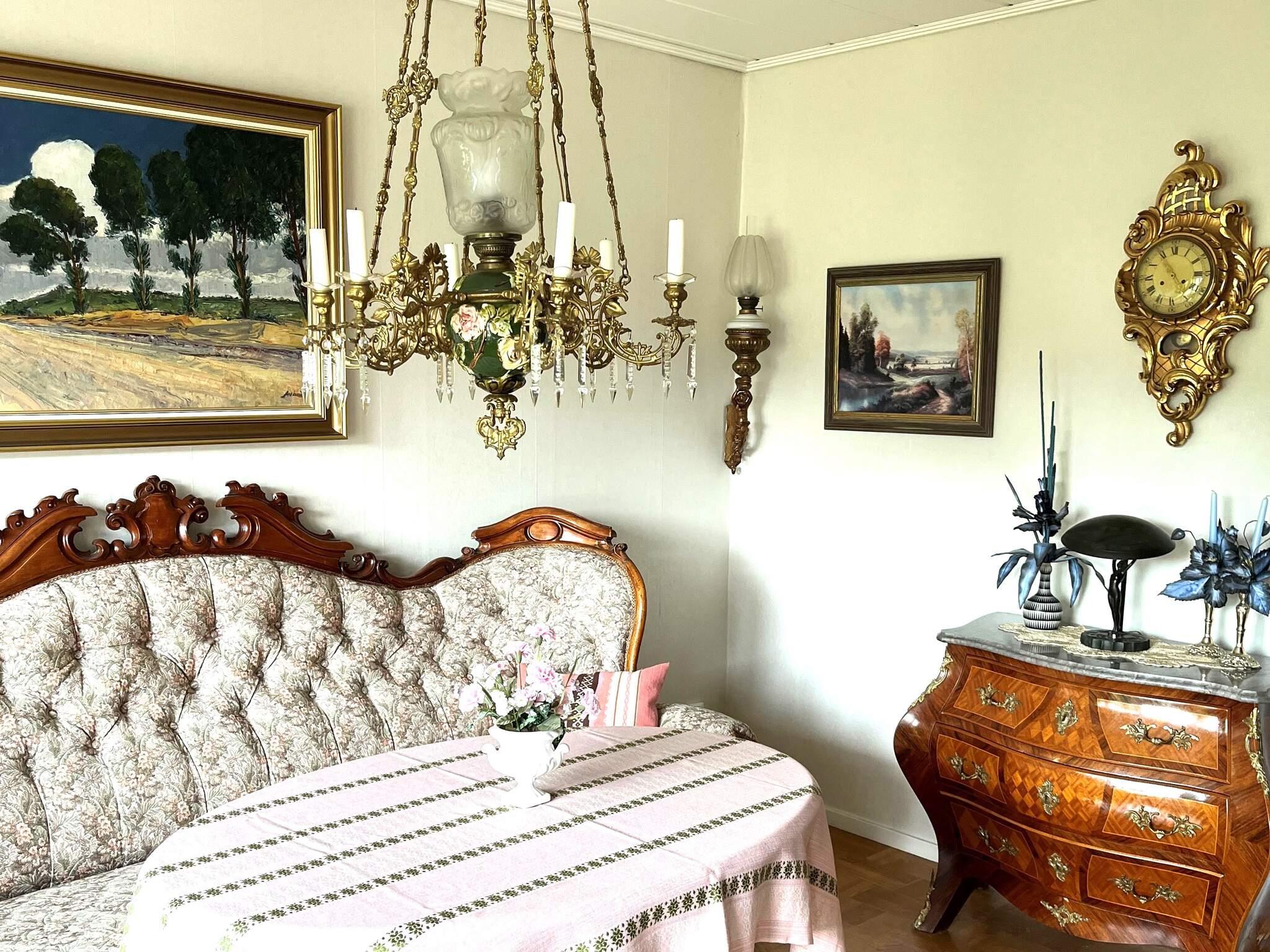 Das Haus ist eine solide einstöckige Villa mit Keller und bietet den meisten Komfort, den Sie brauchen. Sobald Sie das Haus betreten, gibt es einen Flur mit Platz zum Aufhängen von Kleidung und zum Aufbewahren von Schuhen, angrenzend an ein Badezimmer mit Dusche und Toilette. Die Küche ist geräumig und frisch, ausgestattet mit den meisten Notwendigkeiten, jedoch wird das Geschirr von Hand gespült. Neben der Küche befindet sich ein separater Essbereich mit Fenstern zur kleinen Straße im Wohngebiet. Ein geräumiges Wohnzimmer mit bequemen Sesseln lädt dazu ein, sich vor dem Kamin zu entspannen, und in einem angrenzenden Bereich gibt es eine weitere Sitzecke und einen Essbereich. Vom Wohnzimmer aus gelangen Sie in den Hinterhof mit einer Terrasse, die zum See hin ausgerichtet ist.