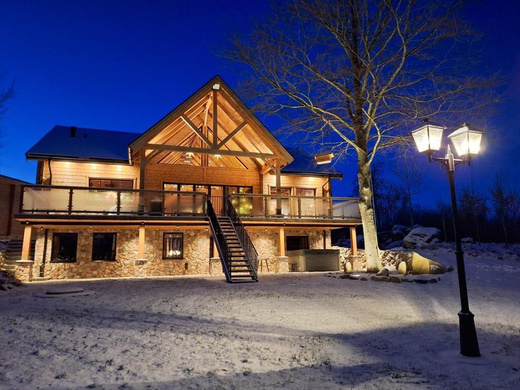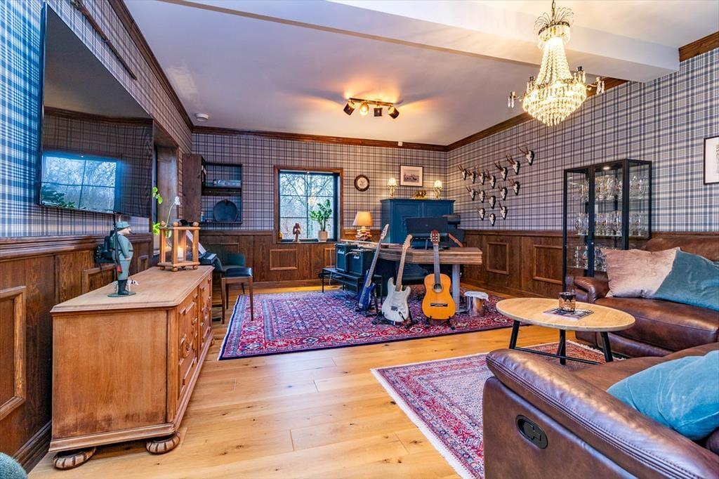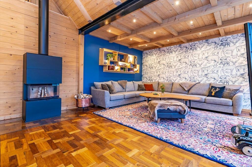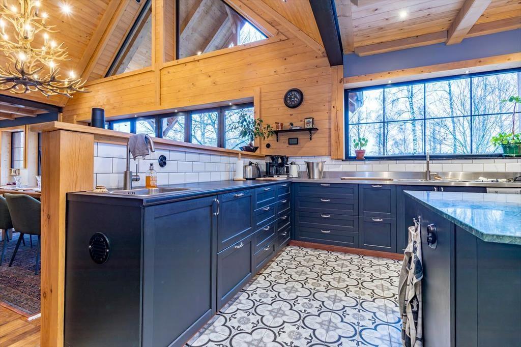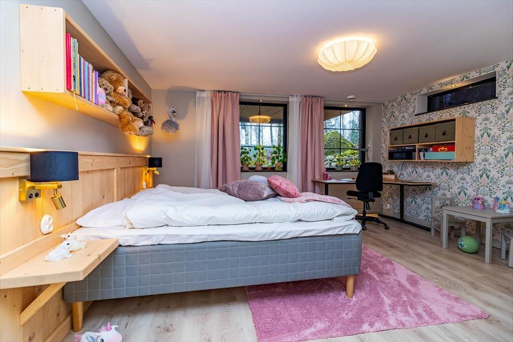 Das Ferienhaus hat eine Wohnfläche von ca. 320 m2 und lässt keine Wünsche offen. Direkt nach dem Betreten des Hauses befindet man sich in einem großen und offenen Flur. Zur linken Seite liegt der Hobby- und Arbeitsraum, zur rechten Seite liegt das erste Badezimmer mit Dusche und WC. Nach vorne aus dem Flur heraus geht es in den großen und hellen Wohn-, Ess- und Küchenbereich. Die große Küche mit Insel ist hervorragend ausgestattet. Der große Esstisch im Essbereich bietet Platz für bis zu 10 Personen. Im Wohnbereich steht ein großes Ecksofa. Dazu gibt es einen TV und einem Kamin. Die große Glasfront mit Schiebetüren führt auf die Terrasse. Seitlich den Essbereiches führt eine Treppe in das Schlafloft mit einem Doppelbett und zwei Einzelbetten. Über den Flur geht es in die untere Etage. Dort befinden sich drei weitere Schlafzimmer mit Doppelbetten, ein Ankleidezimmer und einen Hauswirtschaftsraum mit Waschmaschine und Wäschetrockner. Jedes Schlafzimmer hat ein eigenes Badezimmer mit Dusche und WC. Das Hauptschlafzimmer verfügt zudem über eine Sauna und eine große Doppeldusche.