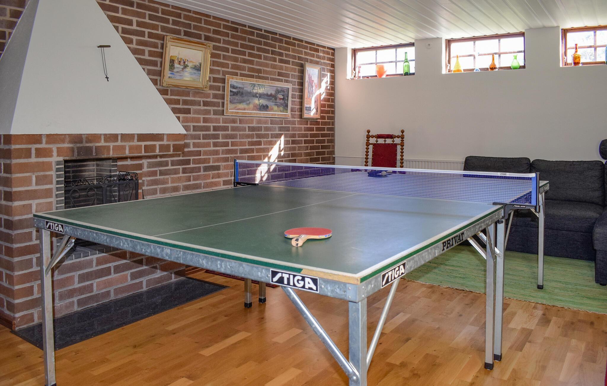 Genießen Sie erholsame Urlaubstage in diesem großzügigen Haus mit Platz für die ganze Familie. Machen Sie es sich im Wohnzimmer gemütlich. Wählen Sie zwischen stilvollen Polstermöbeln im klassischen Design oder der modernen Sofaecke. Spielen Sie gemeinsam am großen Esstisch oder schauen Sie einen Film im TV-Bereich. In der großen, offenen Küche mit Essplatz finden Sie alles, was Sie für die Selbstversorgung benötigen. Zusätzlich stehen Ihnen eine Sauna und ein großzügiger Freizeitraum mit Billardtisch zur Verfügung, ideal bei jedem Wetter.