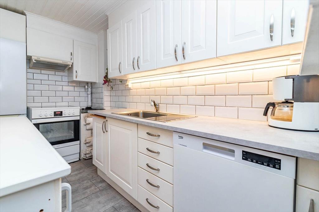Das renovierte Ferienhaus bietet dir auf 105 m² genügend Platz für bis zu 5 Personen. Beim Betreten empfängt dich ein kleiner Flur mit Garderobe. Das Badezimmer ist mit WC, Dusche und einer Waschmaschine ausgestattet. In der Küche findest du alles, was du zum Kochen brauchst: ein 4-Platten-Cerankochfeld, Backofen, Dunstabzugshaube, Kühl- und Gefrierkombination, Spülmaschine, Mikrowelle und Kaffeemaschine. Im gemütlichen Wohnzimmer warten drei Sessel, ein Sofa sowie ein Kamin, der für wohlige Wärme sorgt. Von hier aus gelangst du in den Wintergarten, der als Esszimmer genutzt wird und direkten Zugang zur Außenterrasse mit Sitzmöbeln bietet – ein schöner Platz für gemeinsame Mahlzeiten im Freien.