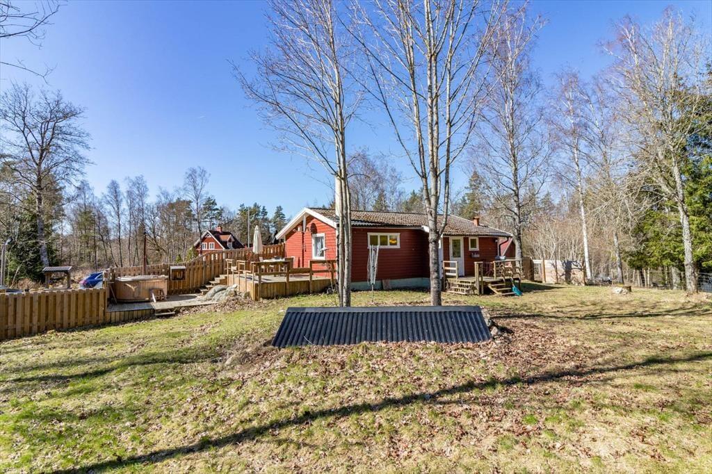 Willkommen im renovierten Ferienhaus "Älmtamåla" auf einem 3.000 m² großem abgelegenen Grundstück in der Ruhe des Waldes nördlich von Holmsjö in der Region Blekinge. Besonders Besitzer von bis zu 3 Hunden (mehr auf Anfrage) werden sich freuen, dass 1.000 m² des Grundstücks vollständig eingezäunt sind, was das Haus besonders hundefreundlich macht. Fußläufig entfernt liegen die beiden größeren Seen Trehörningsjö und Ältensjö, an denen Sie ausgedehnte Spaziergänge und Fahrradtouren machen können, sowie zwei kleine Badeseen. Einen weiteren öffentlichen Badeplatz finden Sie etwa 5 km entfernt südlich von Saleboda.