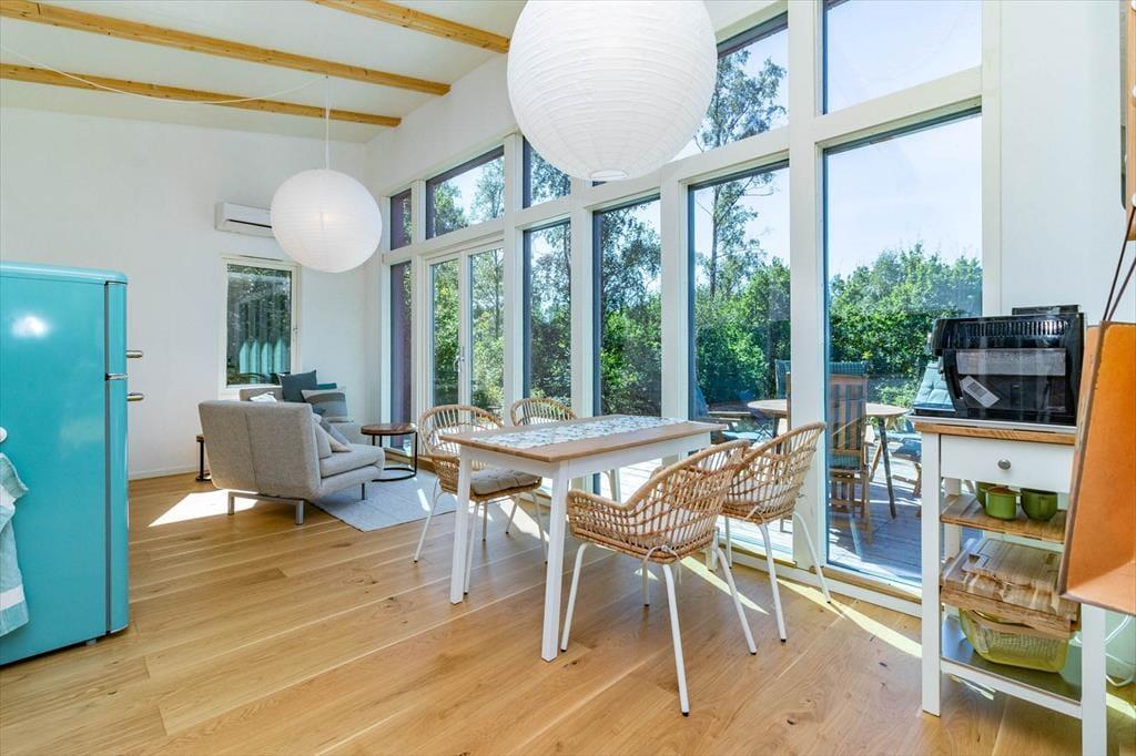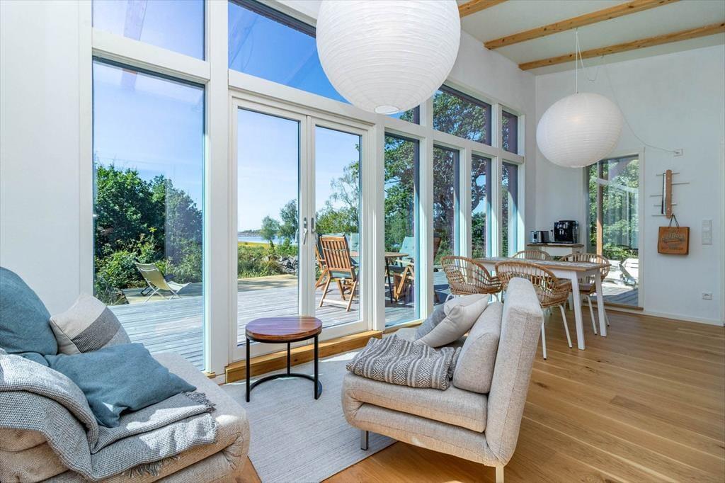 Das gemütliche Haus bietet auf 36 m² Platz für zwei Personen und ist perfekt für eine Auszeit zu zweit geeignet. Du betrittst es über eine teils überdachte Terrasse, von der aus du einen schönen Blick auf das Meer genießen kannst.