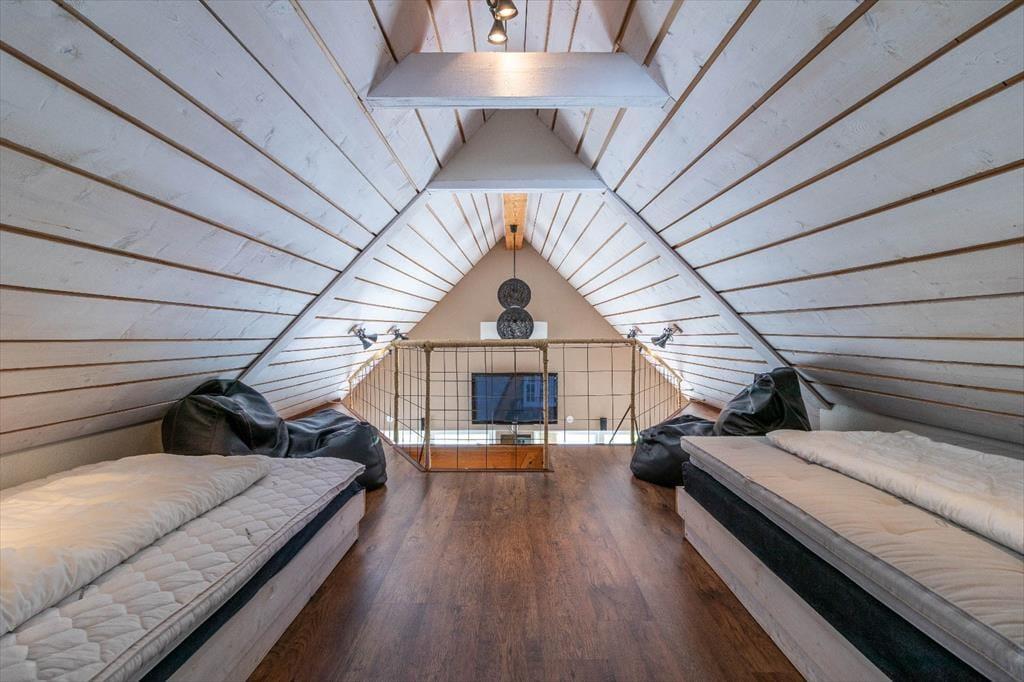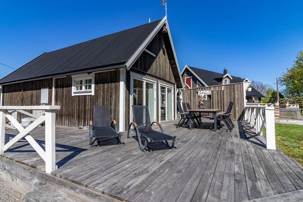 Mit seinen 60 m² bietet das Haus Platz für bis zu 6 Personen und empfängt dich mit einer offenen, freundlichen Wohnatmosphäre. Im kombinierten Wohn-, Schlaf- und Küchenbereich findest du zwei gemütliche Sessel, ein ausziehbares Schlafsofa für bis zu zwei Personen sowie einen TV mit Chromecast und schwedischen Programmen. Die beiden Schlafzimmer im oberen Stockwerk verfügen jeweils über zwei 140-cm-Doppelbetten; eines der Zimmer ist offen zum Wohnbereich gestaltet und verleiht dem Haus dadurch einen luftigen Loft-Charakter. Die Küchenzeile ist mit allem ausgestattet, was du für die Selbstversorgung brauchst: Herd mit 4 Ceran-Platten, Ofen, Dunstabzugshaube, Kühl- und Gefrierkombination, Spülmaschine, Mikrowelle und Kaffeemaschine. Ein ausziehbarer Esstisch verbindet den Wohn- und Küchenbereich. Das Bad bietet WC, Dusche und eine Waschmaschine. Für angenehme Temperaturen sorgt eine Klimaanlage/Luftwärmepumpe. Internet steht ebenfalls zur Verfügung. CD/DVD-Player und Radio ergänzen die Ausstattung.