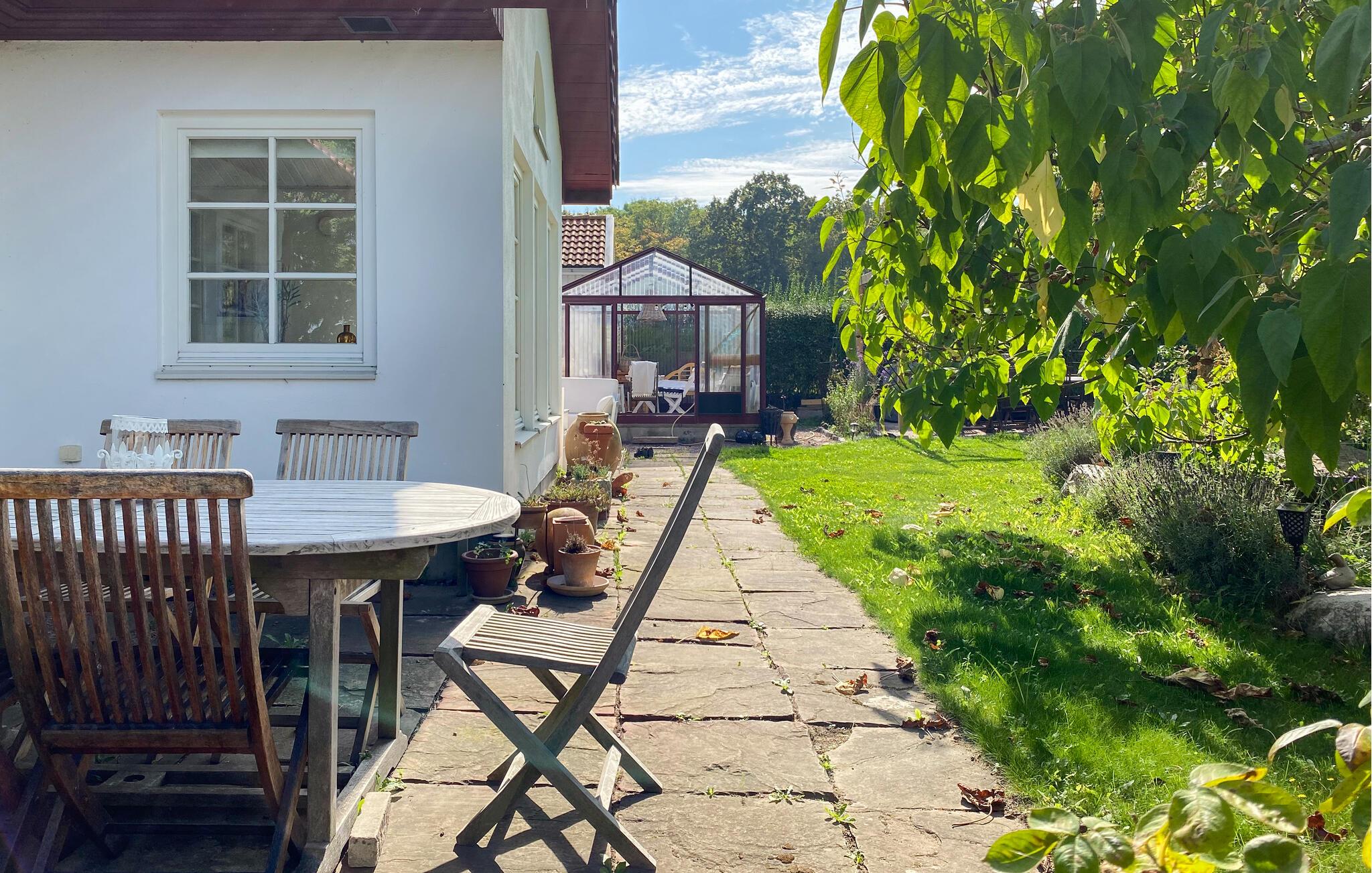 Die großzügige Terrasse mit Sitzgelegenheiten lädt dazu ein, den Tag bei einem entspannten Frühstück oder einem Abendessen unter freiem Himmel zu beginnen und ausklingen zu lassen. Die Liegestühle im Garten sind ideal, um sonnige Tage in Ruhe zu genießen. Für Grillliebhaber bietet die Pergola eine wunderbare Möglichkeit, laue Sommerabende bei einem Barbecue zu verbringen.