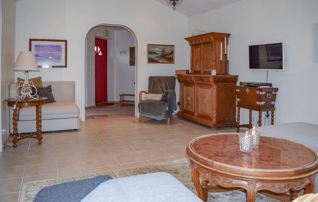 Genießen Sie Ihren Urlaub in diesem charmanten Ferienhaus in Kivik, das sowohl rustikale als auch moderne Elemente miteinander vereint. Das Haus ist mit einer warmen, gemütlichen Einrichtung ausgestattet und strahlt eine einladende Atmosphäre aus. Das Wohnzimmer bietet viel Platz und ein helles, freundliches Ambiente, das durch große Fenster ergänzt wird, die den Blick ins Grüne freigeben. Lehnen Sie sich auf der gemütlichen Couch zurück und genießen Sie die Ruhe. Die elegante Küche bietet alles, was Sie für die Zubereitung köstlicher Mahlzeiten benötigen. Nehmen Sie sich Zeit für ein gemeinsames Essen im angrenzenden Essbereich, der Platz für die ganze Familie bietet.