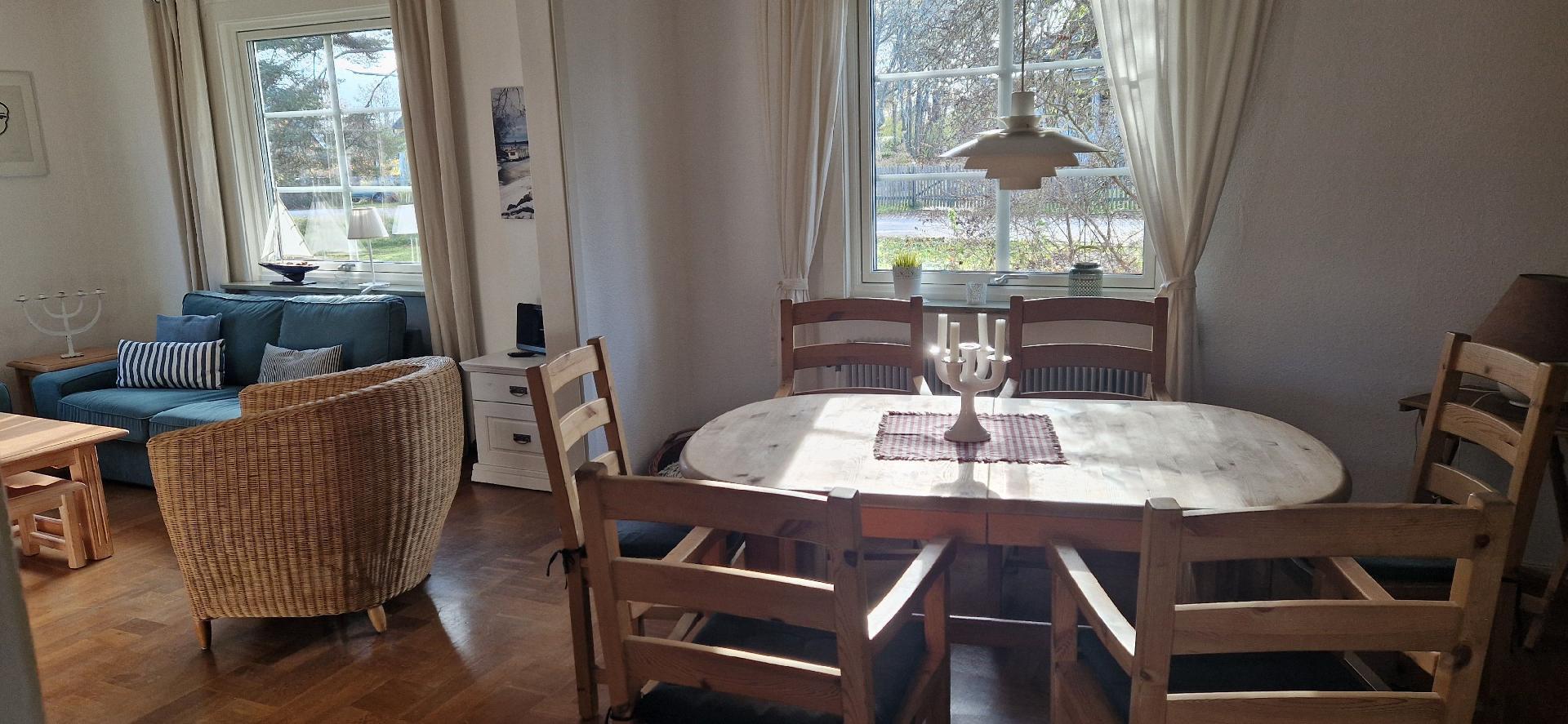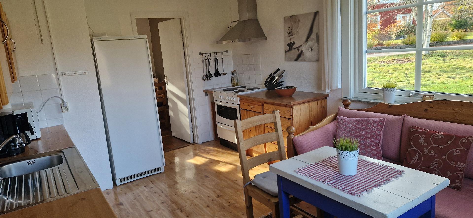 The interior of the 105 square metre red wooden house combines modern comfort with the charming flair of a Swedish country house. It houses a spacious living area consisting of a living room, a library with desk and a dining room, all furnished in an appealingly cosy country house style. Three harmoniously merging rooms offer space to relax, read and enjoy meals together. The eat-in kitchen is fully equipped and invites you to linger and cook with a view over the large property. Upstairs there are three bedrooms and a bathroom with bathtub - everything you need for a restful night's sleep after a day in the great outdoors.