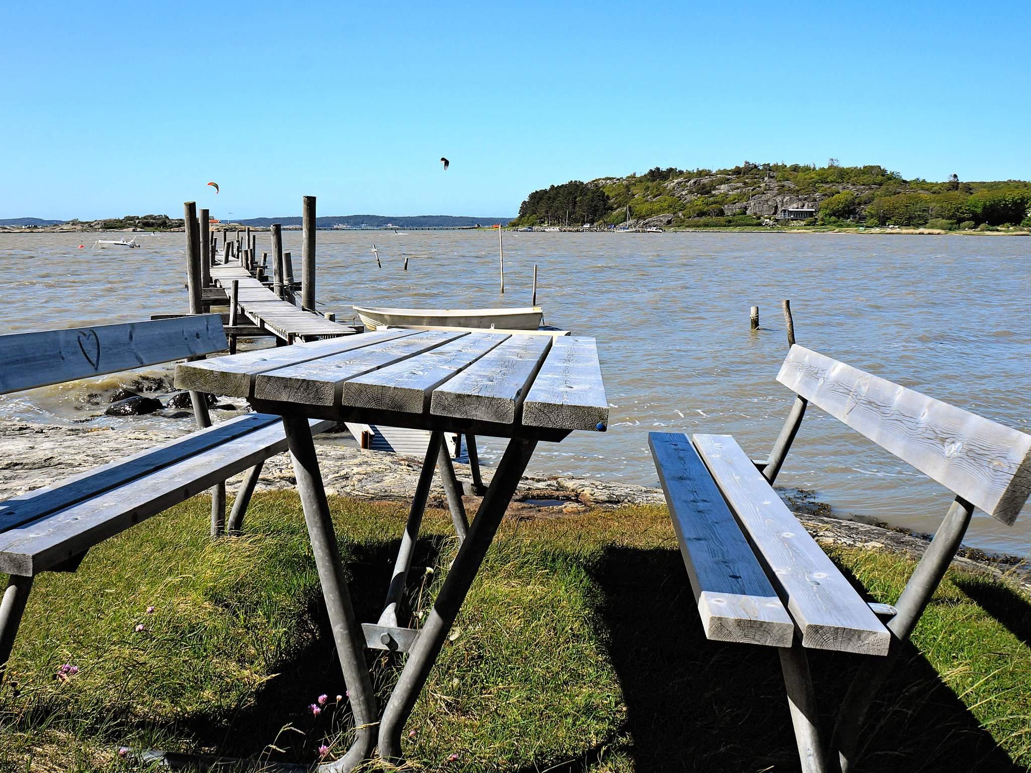 Nur 150 m weiter liegt das nächste private Badeufer mit Steg und Felsen. Der kinderfreundliche, öffentliche Badestrand von Vadholmen liegt auf der anderen Seite der Landzunge und ist per Auto schnell erreicht. Als Ausflugsziel bieten sich z.B. das schöne Marstrand oder die Stadt Kungälv an. Auch Stenungsund oder die Hafenstadt Göteborg liegen in Reichweite für Tagesausflüge. Zum Einkaufen fährt man ca. 6 km nach Kode. Außerdem kleiner Einkaufsladen 4 km von der Wohnung in Solberga.